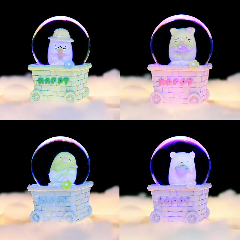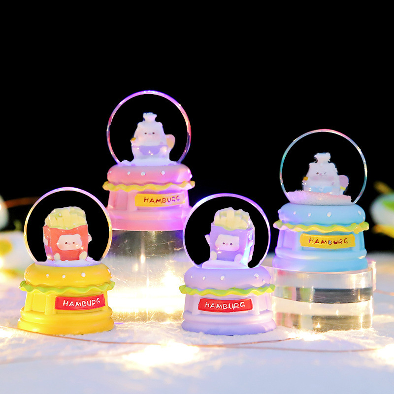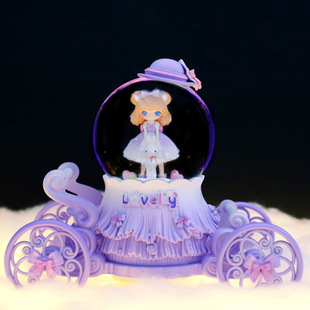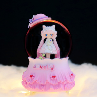 卡通洛丽塔帽子女孩水晶球音乐盒七彩灯光旋转飘雪装饰品生日礼物