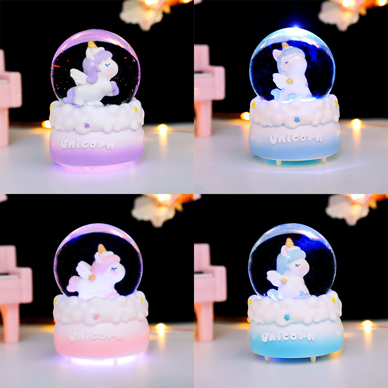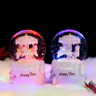 梦幻少女心旋转木马水晶球灯光摆件学生礼物八音盒飘雪音乐盒批发
