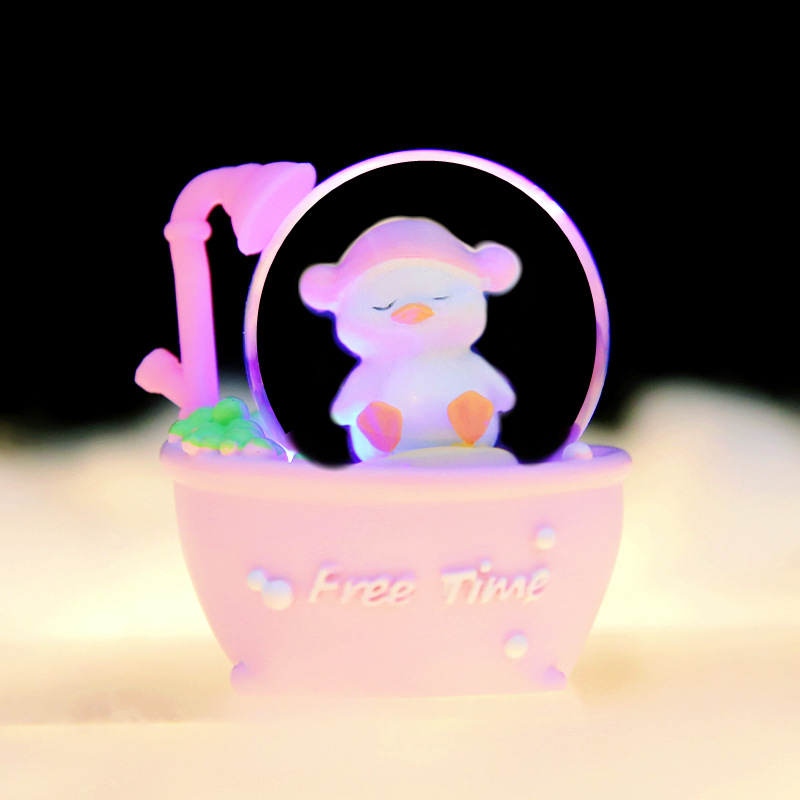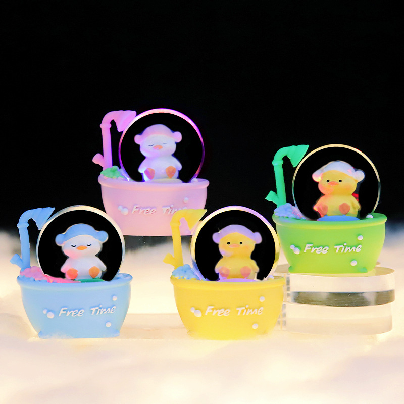 귀여운 만화 인형 오리 목욕 오리 미니 빛나는 크리스탈 볼 컴퓨터 데스크탑 작은 장식품 도매