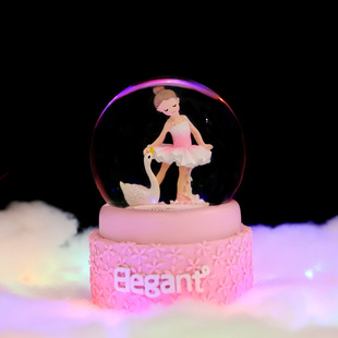 创意礼品芭蕾女孩少女水晶球八音盒雪花发光梦幻水晶球可爱音乐盒