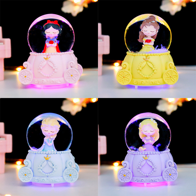 冰山城堡雪人与公主水晶球音乐盒动漫人物摆件飘雪彩灯装饰品批发