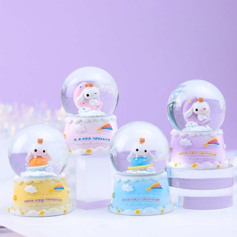 创意礼品洛丽塔兔子公主外转水晶球八音盒旋转雪花七彩灯光装饰品