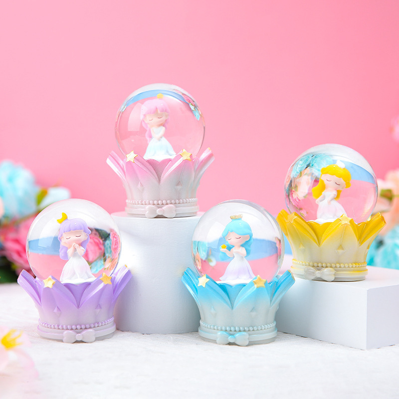 家居摆件情人节礼物创意天使女孩情侣带灯飘雪水晶球学生礼品