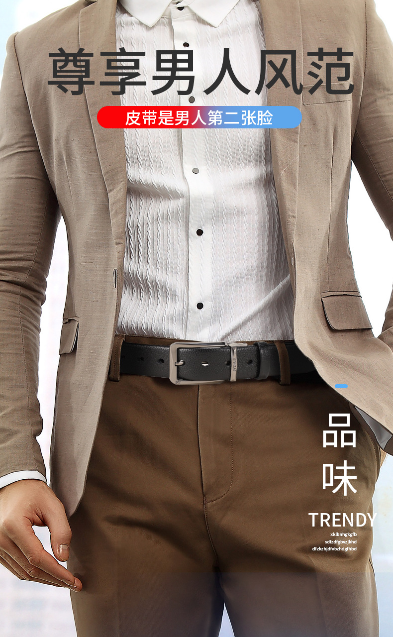 남성용 벨트, 심플한 핀 버클, 고급스럽고 다재다능하며 패셔너블한 청년 및 중년 남성을 위한 벨트, 리치 패턴 복고풍 스타일