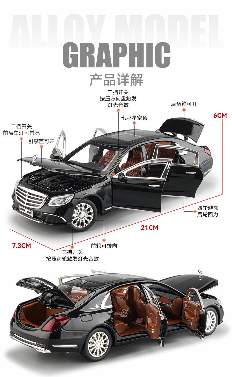 [자동차 1/24] 대형 메르세데스 e300 모델 자동차 시뮬레이션 합금 컬렉션 소년 장식품 L Maibakh A스토어 가기