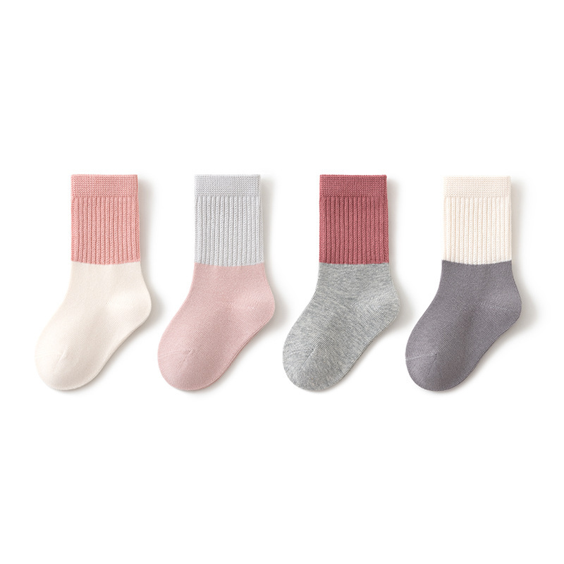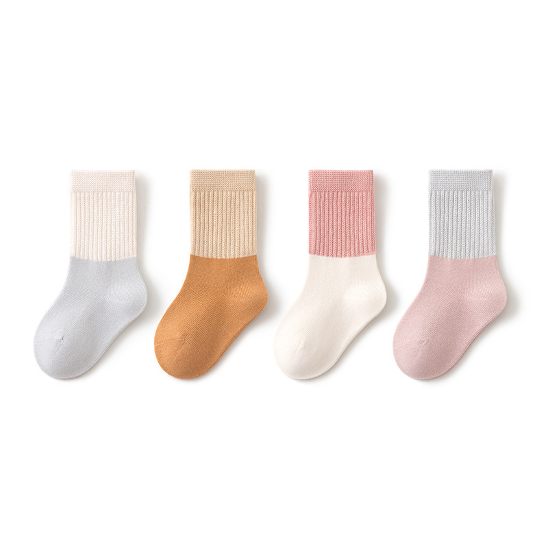 엄선된 4켤레 세트 아동 양말 가을 겨울용 코마사 면 아동 중목 양말 배색 무봉제 신생아 양말 A급