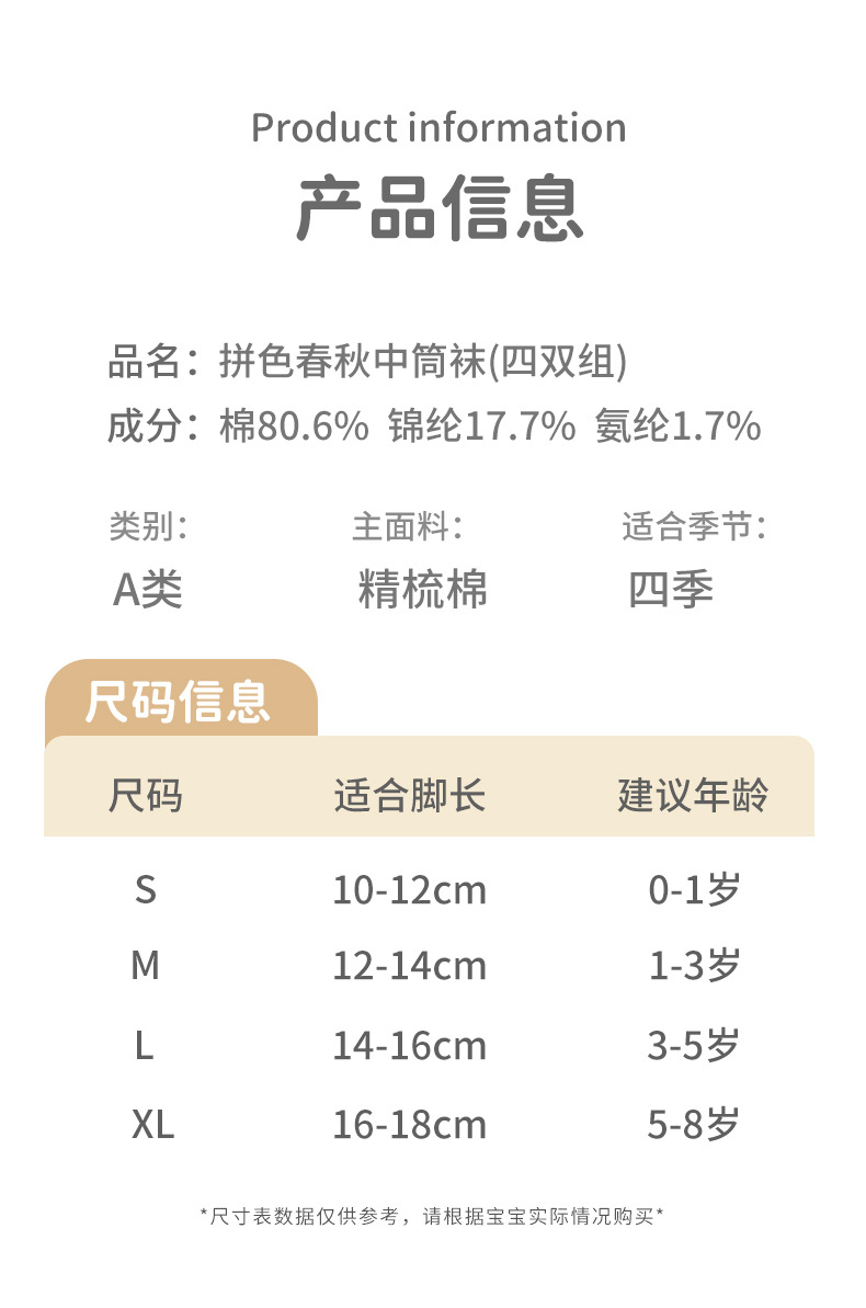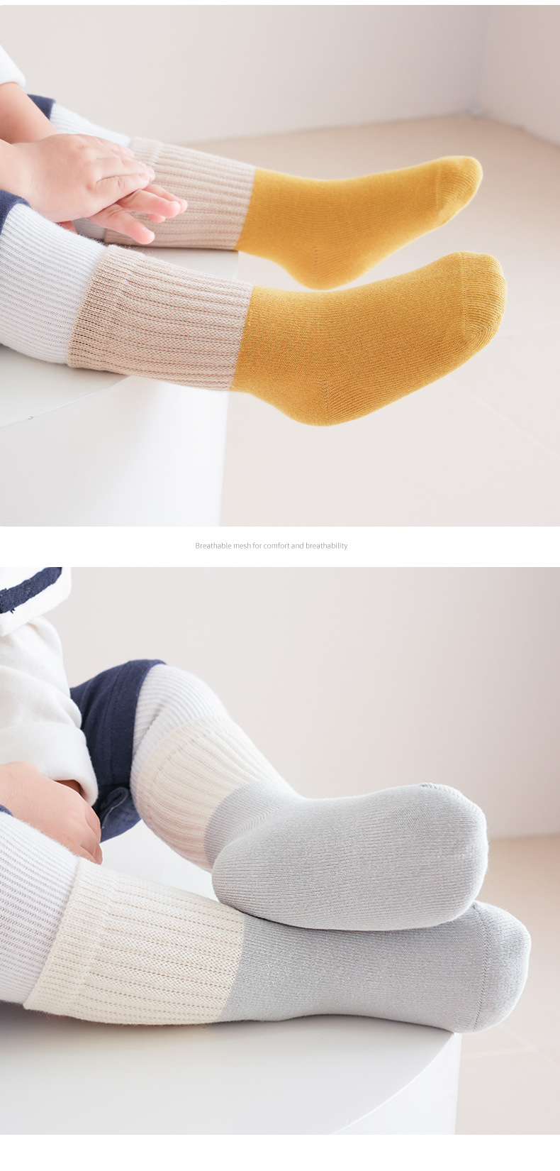 엄선된 4켤레 세트 아동 양말 가을 겨울용 코마사 면 아동 중목 양말 배색 무봉제 신생아 양말 A급스토어 가기