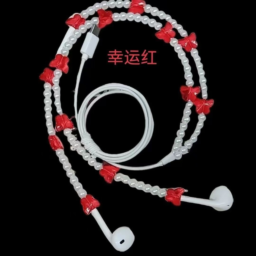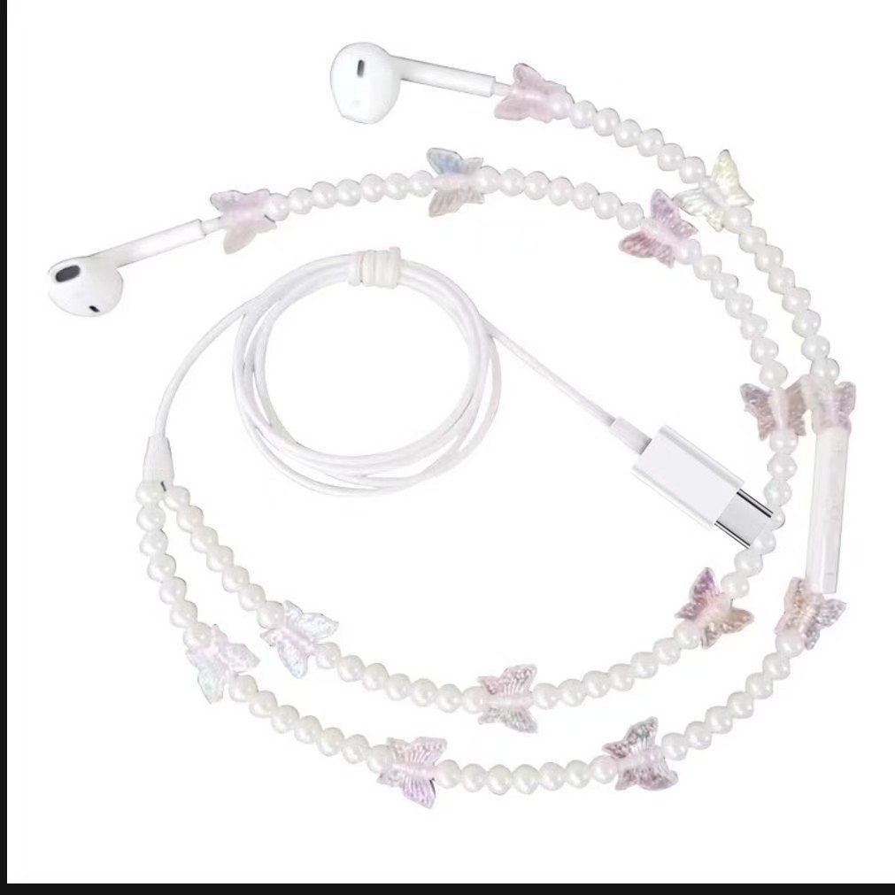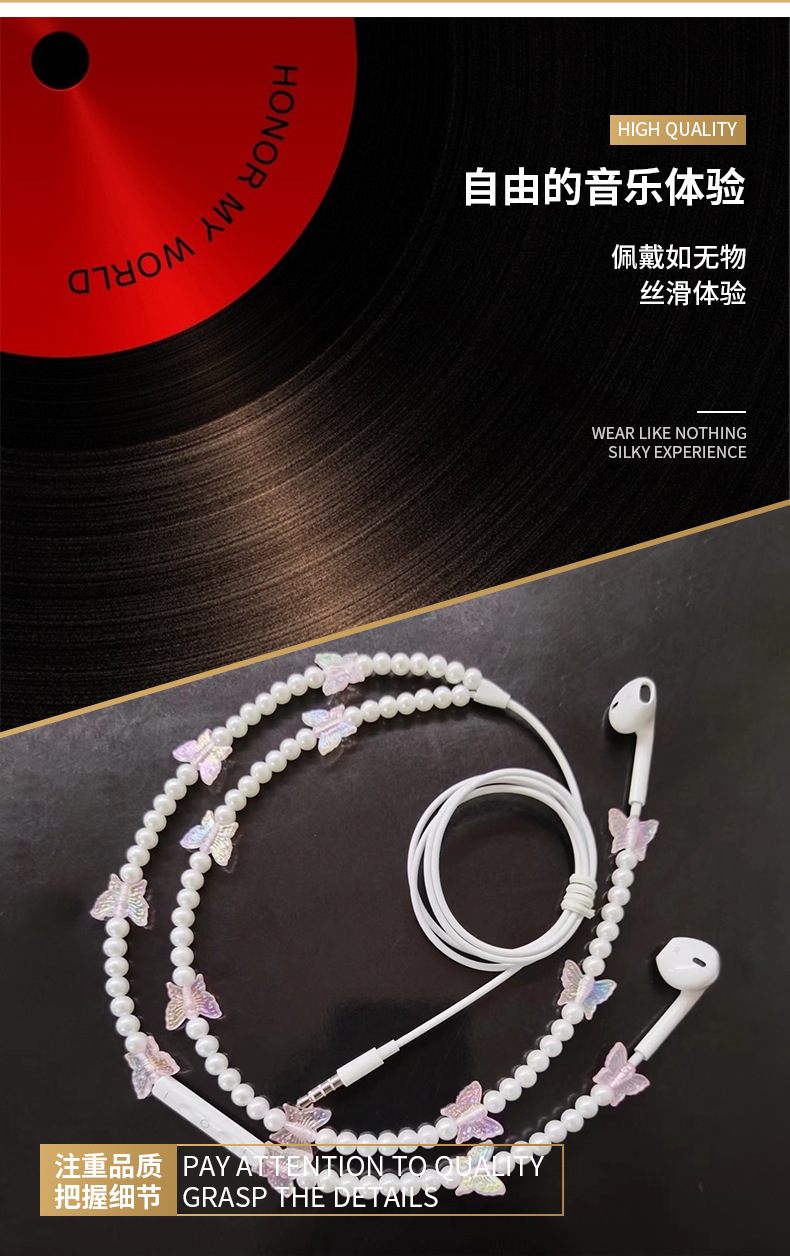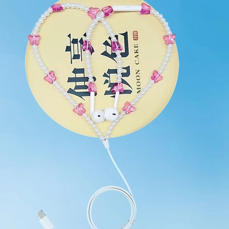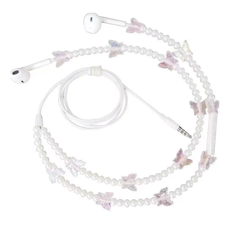 새로운 창조적 인 귀 유선 헤드폰은 와이어 제어 나비 진주 목걸이 헤드폰 도매 공급스토어 가기