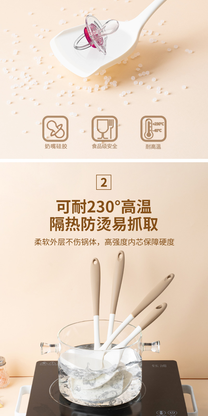 식품 등급 2 색 모든 것을 포함하는 실리콘 주방 주걱 수프 스푼 고온 내성 세트 요리 주걱 비 스틱 조리기구
