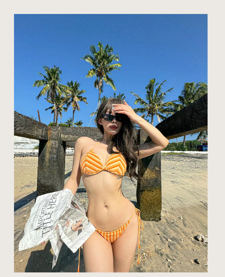 2026 신상품 해외 유럽 및 미국 스타일 스트라이프 섹시 핫걸 3피스 끈 비키니 해변 휴가용 비키니
