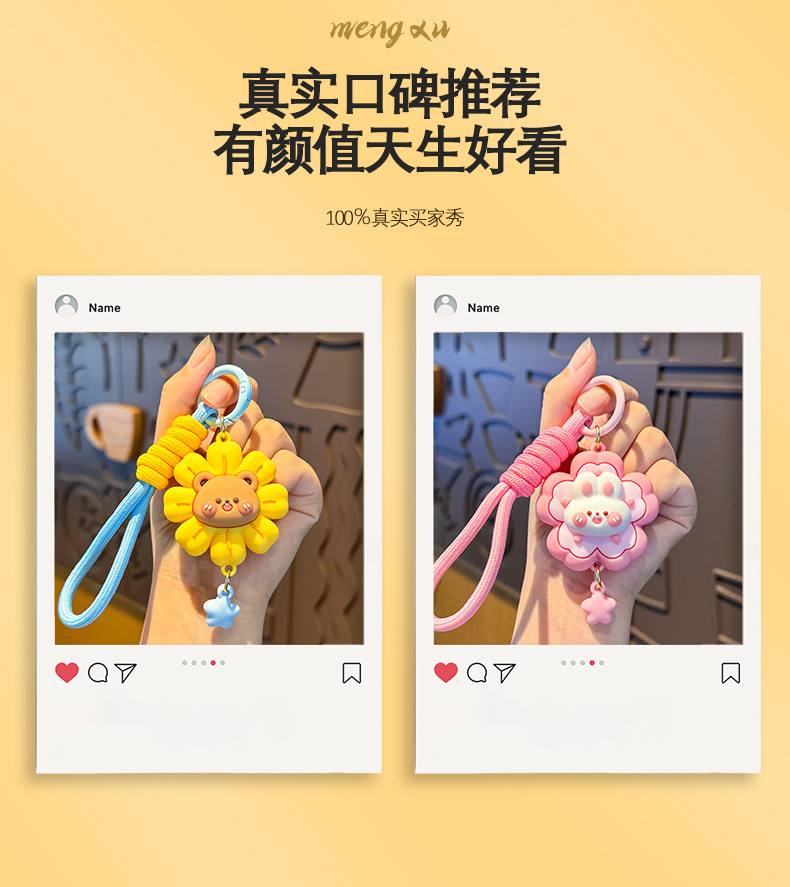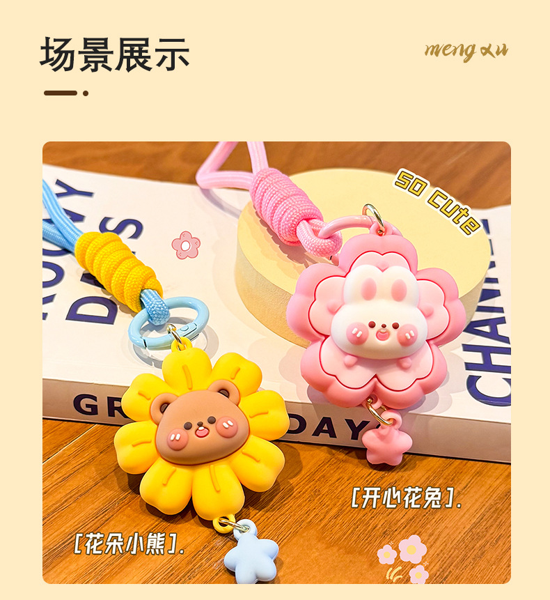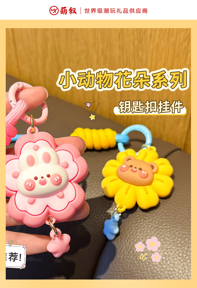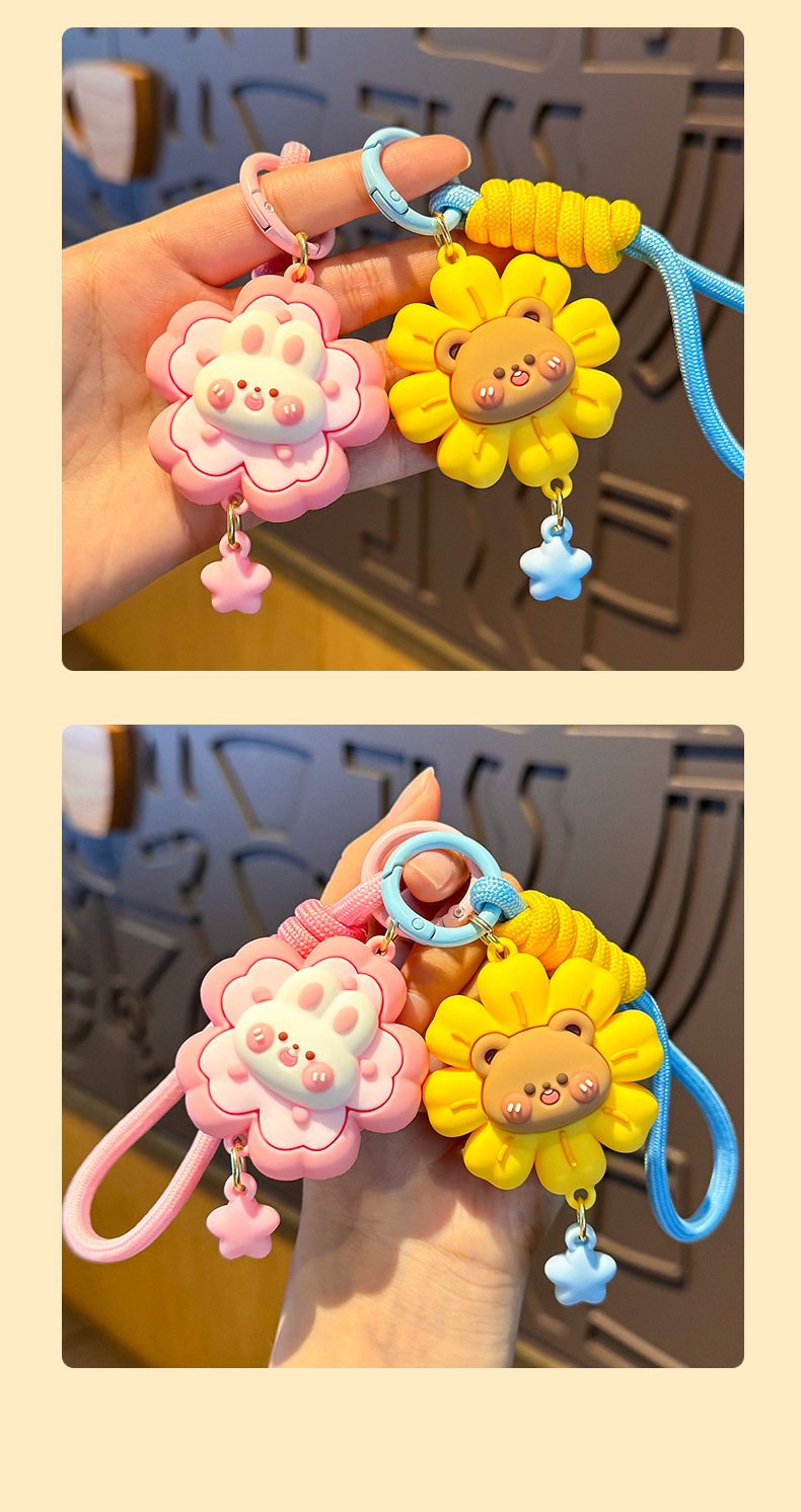 창조적 인 곰 토끼 꽃 키 체인 여성 귀여운 3 차원 작은 꽃 곰 토끼 인형 키 체인 학생 Schoolbag 펜던트