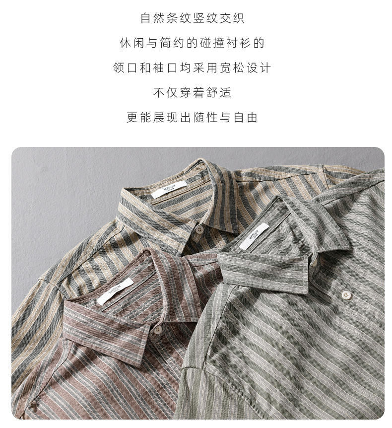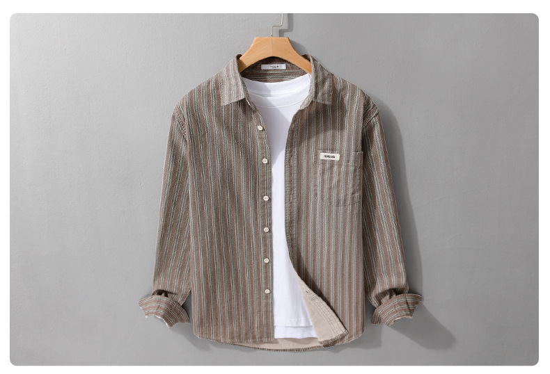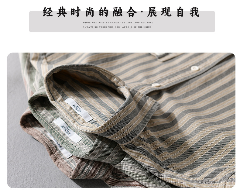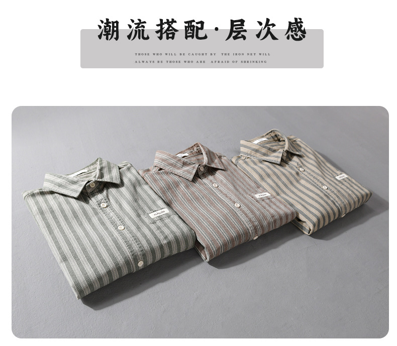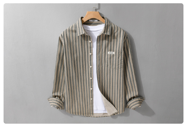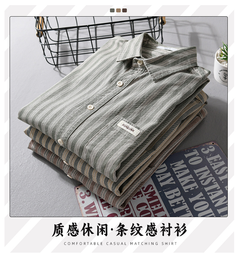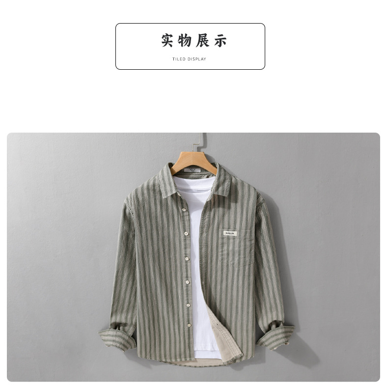 봄과 가을 남자 줄무늬 간단한 긴팔 셔츠 유행 일본 스타일 느슨한 인기 청소년 올 매치 남자 셔츠 3108스토어 가기