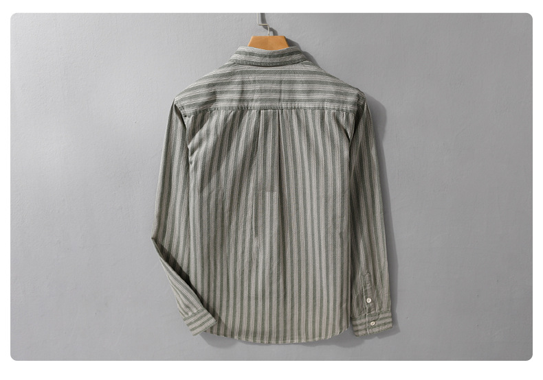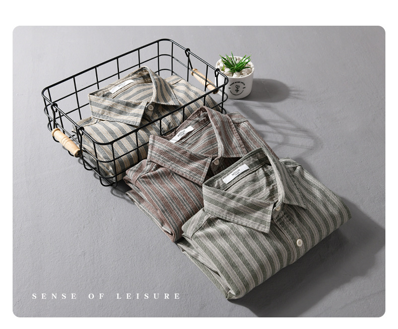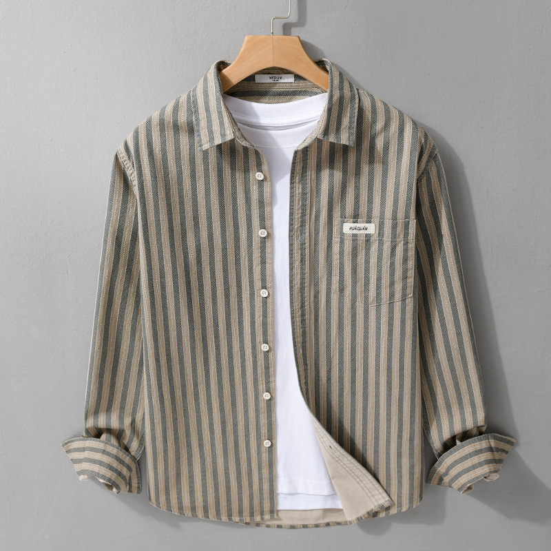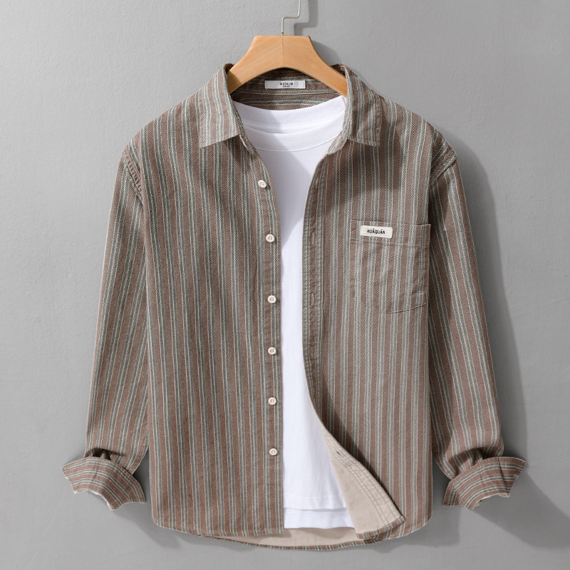 봄과 가을 남자 줄무늬 간단한 긴팔 셔츠 유행 일본 스타일 느슨한 인기 청소년 올 매치 남자 셔츠 3108