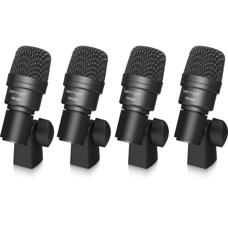 TM1200 中振膜动圈话筒头专门针对嗵鼓和军鼓进行了调校。 将夹子安装到每个麦克风上,然后将每个夹子连接到嗵鼓或军鼓的箍上。 从麦克风到鼓面的角度和距离是可调节的。 将每个朝向鼓面的中心放置以获得最佳效果。