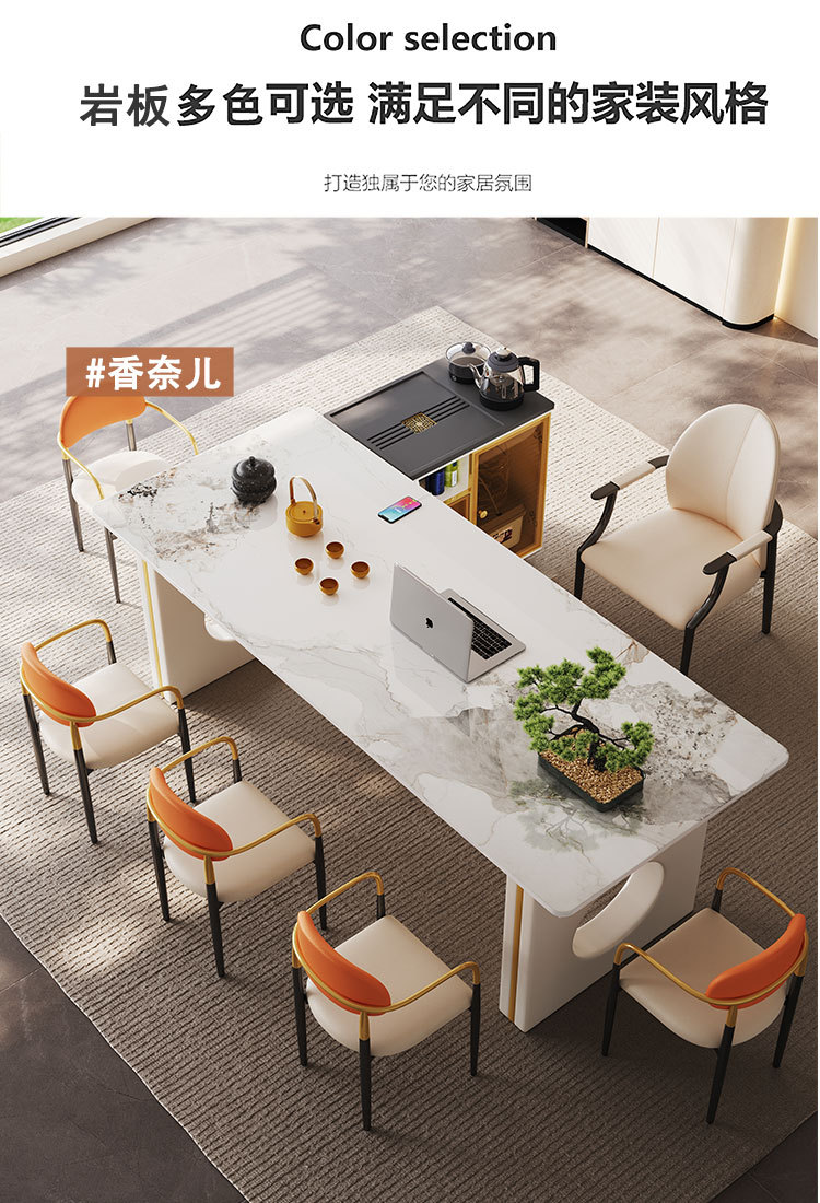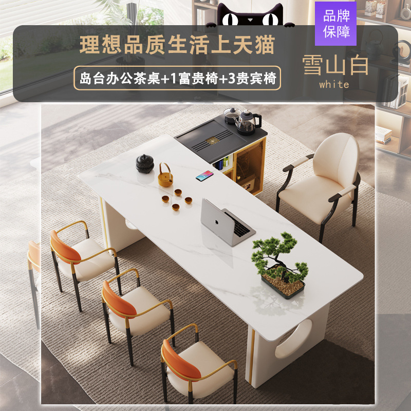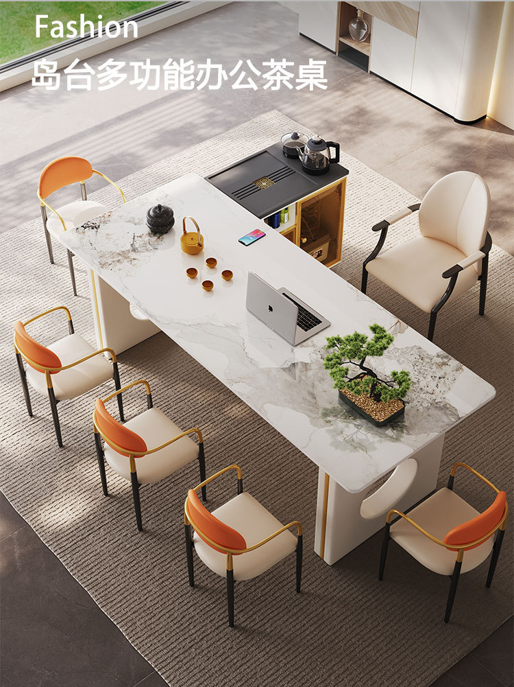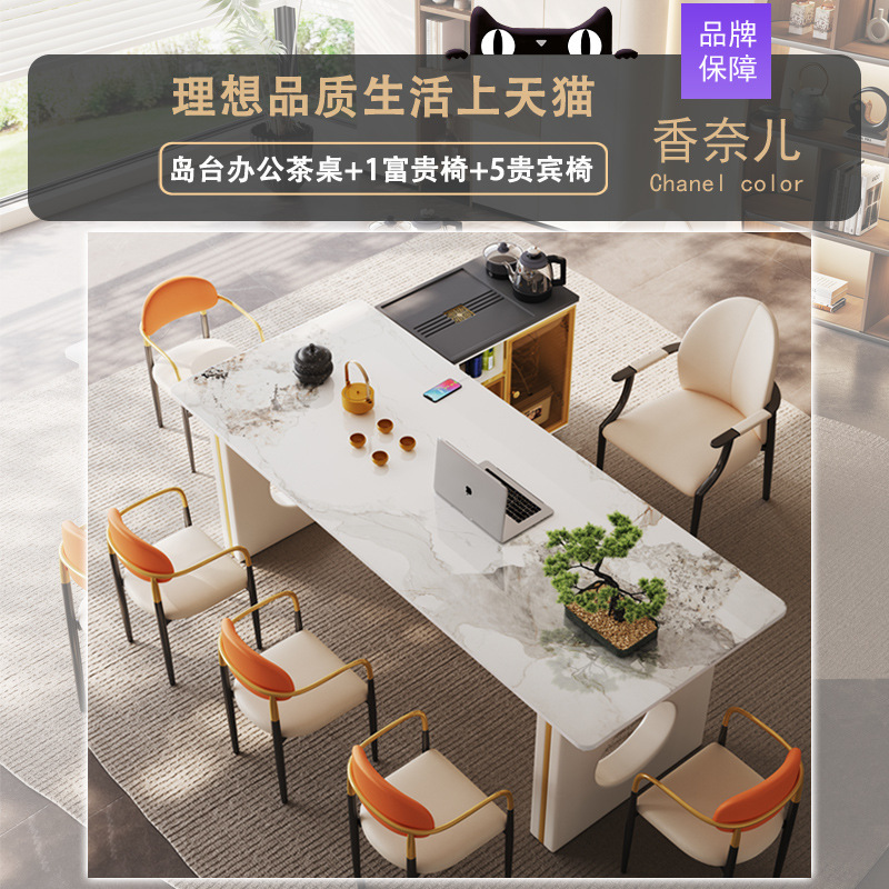 섬 테이블 락 플레이트 티 테이블과 의자 조합 라이트 럭셔리 현대 고급 고급 감각 가정용 다이닝 테이블 고급 리셉션 오피스 티 테이블스토어 가기