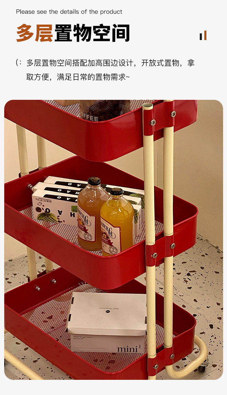 • 3단 탄소강 베이지 바구니 + 레드 로드 트롤리