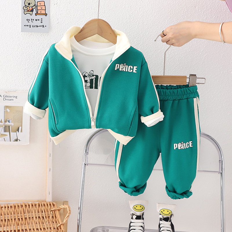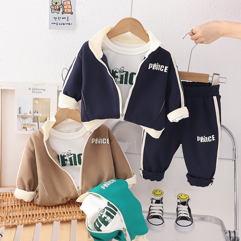 아동복 소년의 봄과 가을 새로운 서양식 아기 소년의 봄 착용 잘 생긴 스포츠 세트 3 피스 트렌디스토어 가기