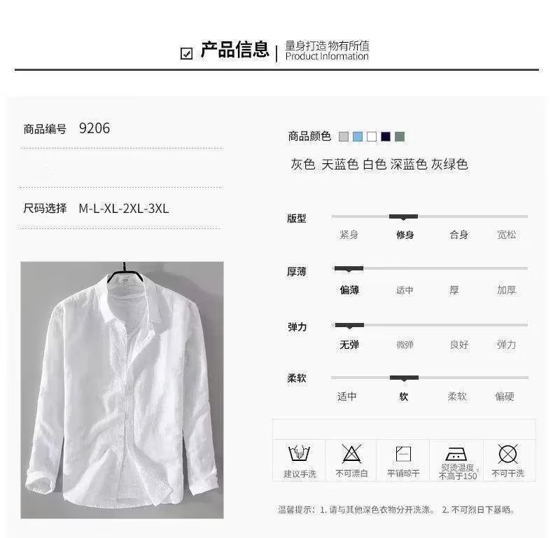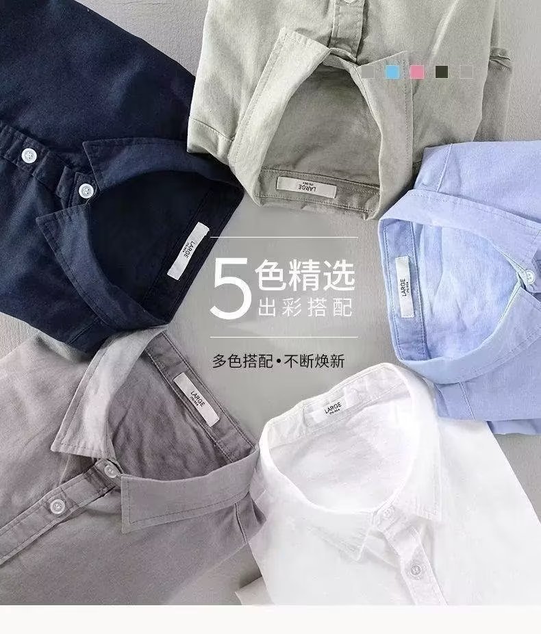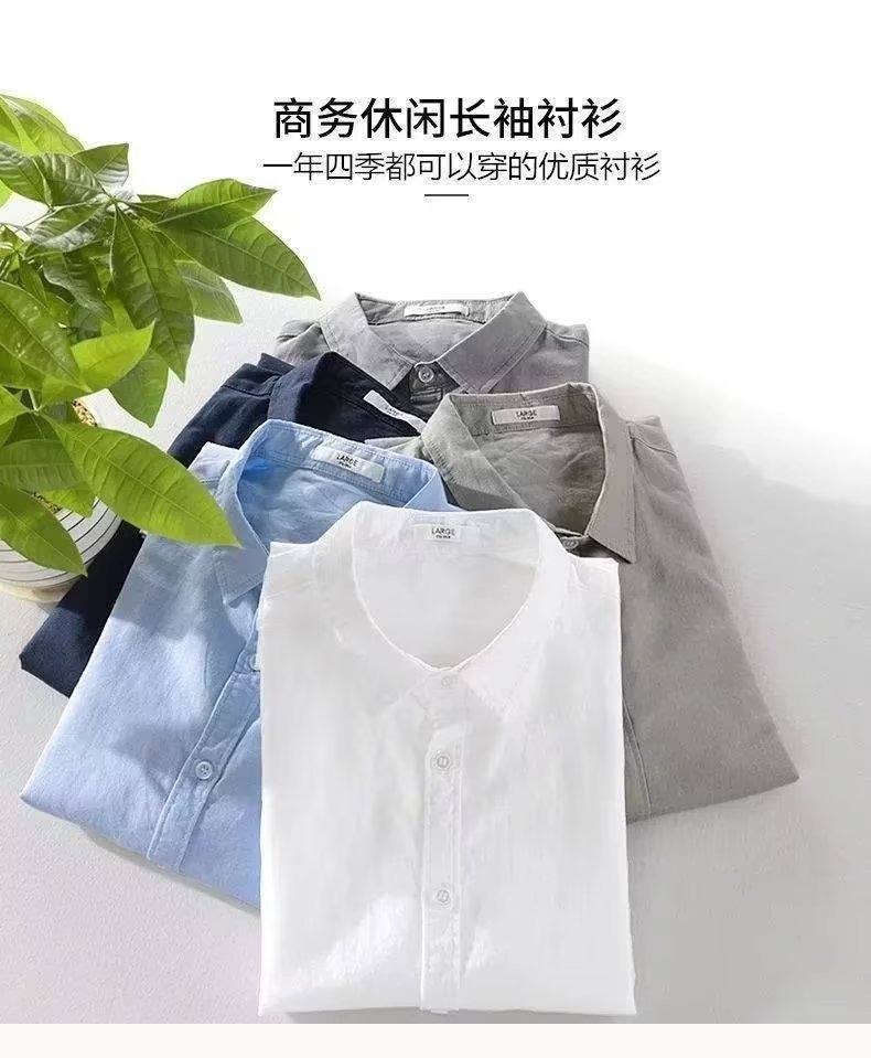 대외 무역 린넨 셔츠 남성 긴팔 셔츠 캐주얼 옷깃 단색 느슨한 통기성 린넨 셔츠 남성 도매스토어 가기