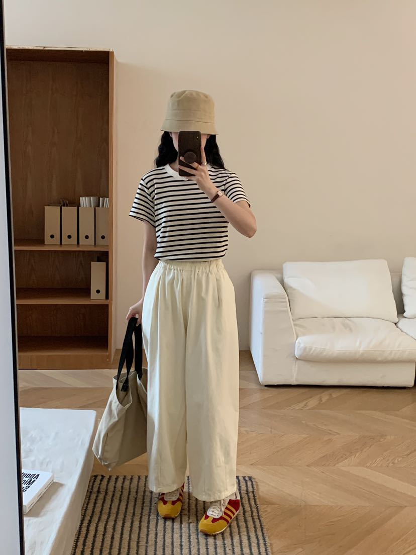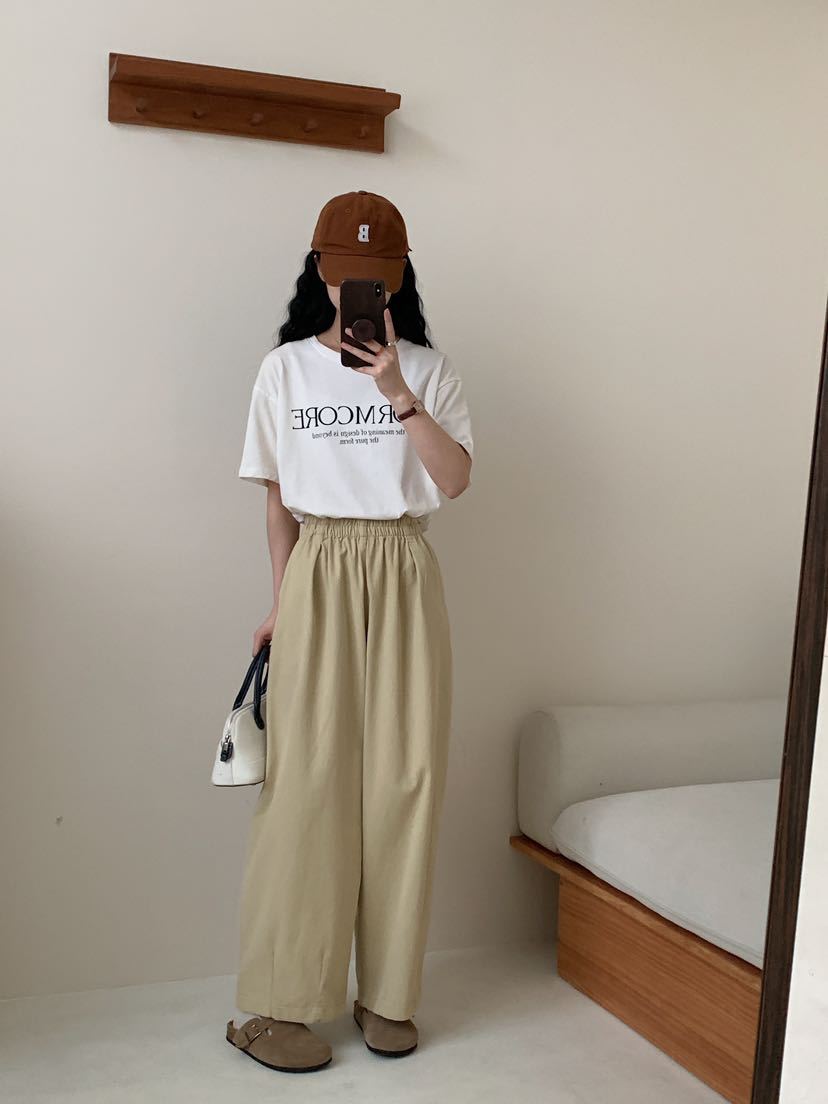 캐주얼 할란 바지 가을 2024 간단한 복고풍 한국식 허리 솔리드 컬러 슬리밍 여성을위한 올 매치 느슨한 스트레이트 바지스토어 가기