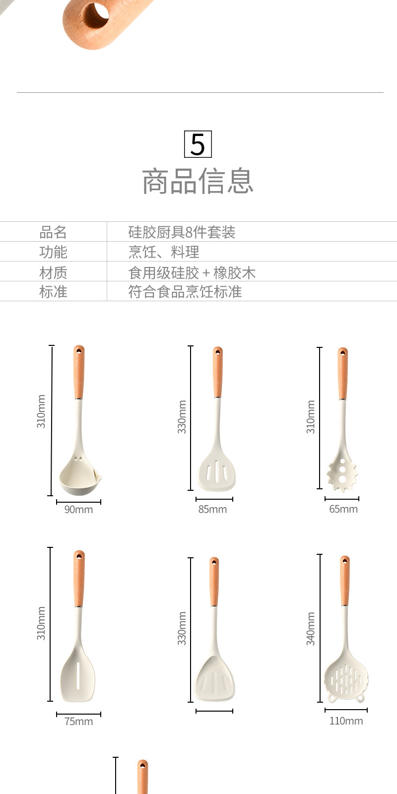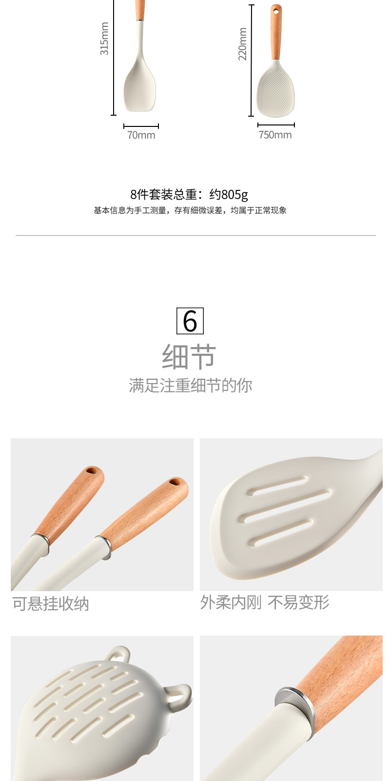 가정용 실리콘 주방용품 세트 논스틱 팬 요리용 주걱 조리용 주걱 주방 도구 일상용 주방 8종 세트