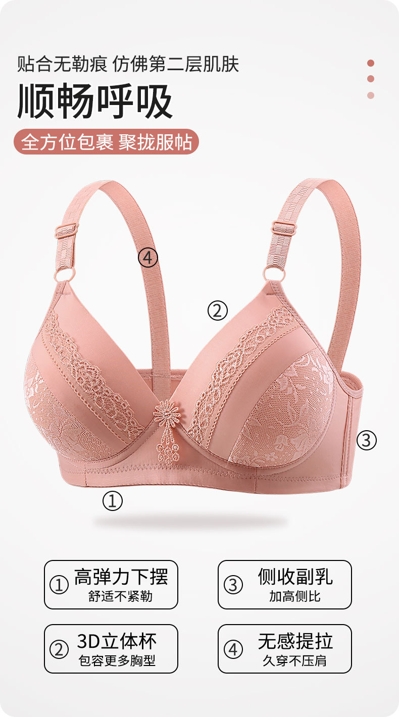 속옷 브래지어 플러스 사이즈 어머니 얇은 조정 가능한 여성 중년 4050 세 스틸 링 빅 가슴 여름