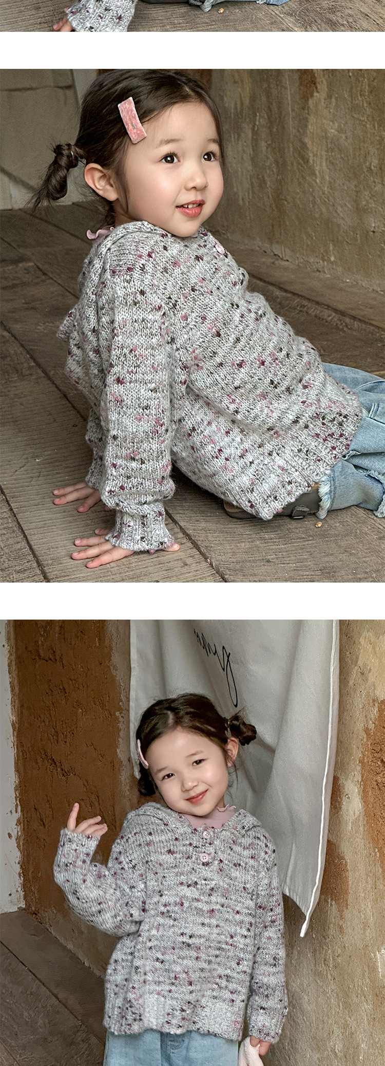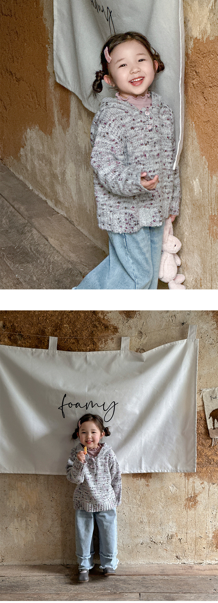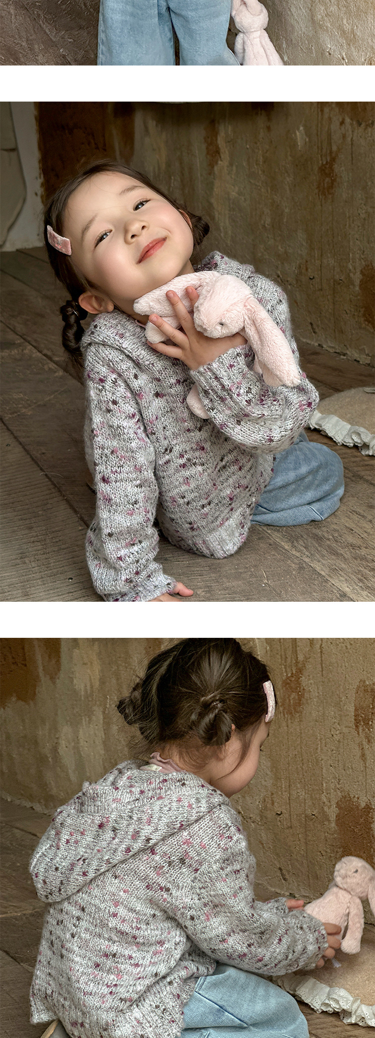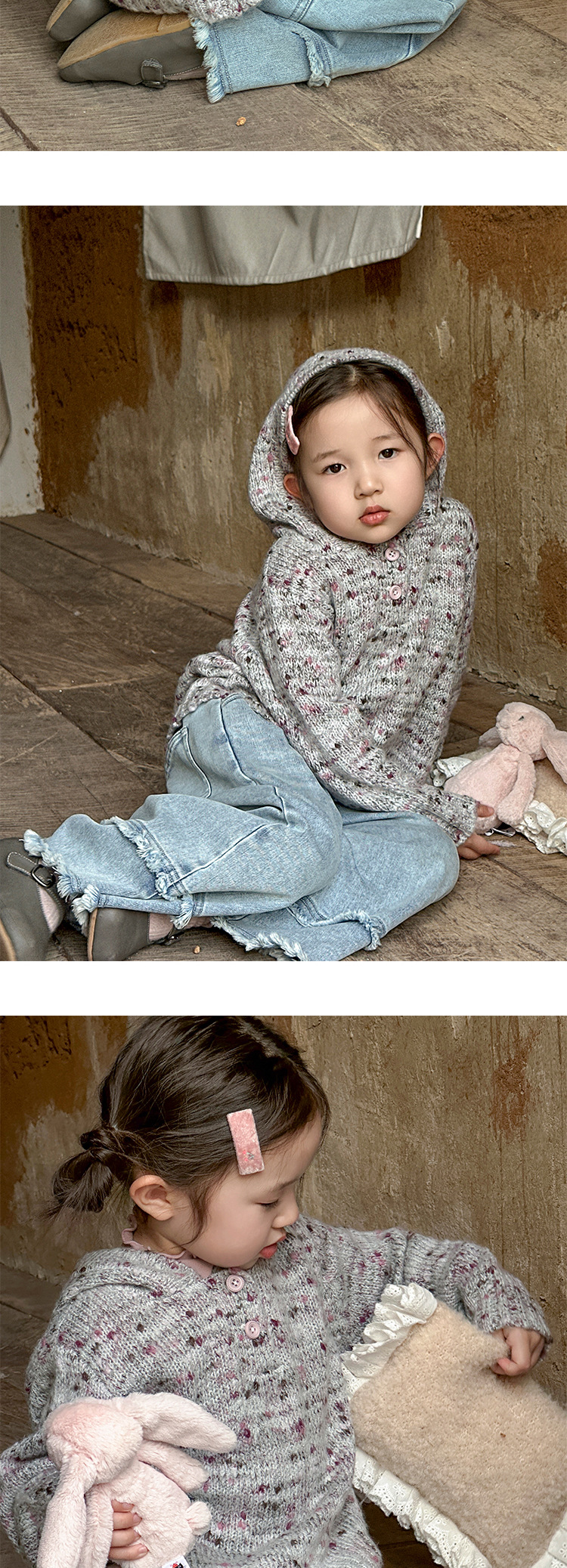 여아용 화려한 색상의 두꺼운 모직 후드 코트 2025 가을 오리지널 아동복 아동용 레트로 패치워크 레이스 데님 팬츠스토어 가기