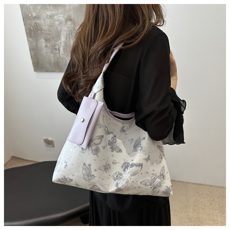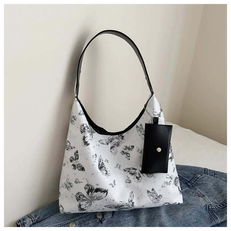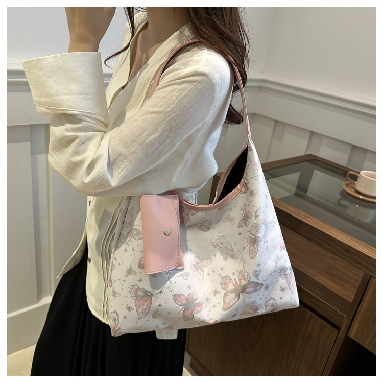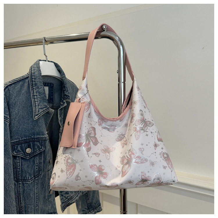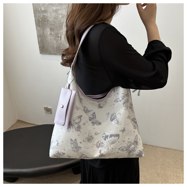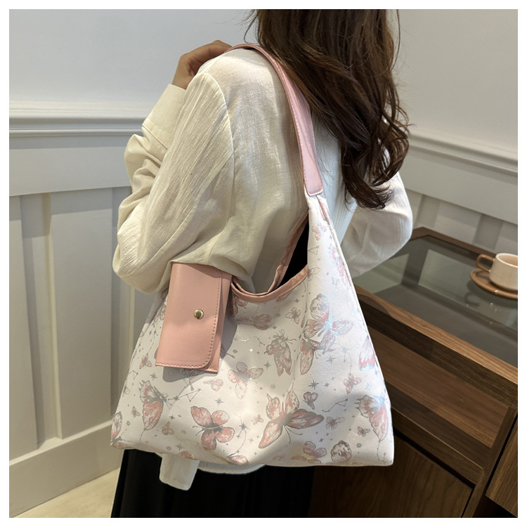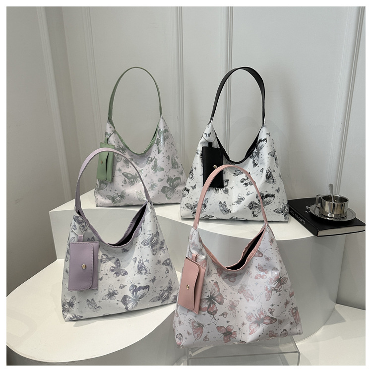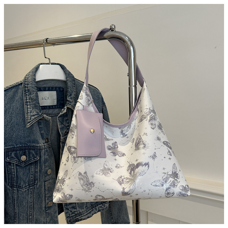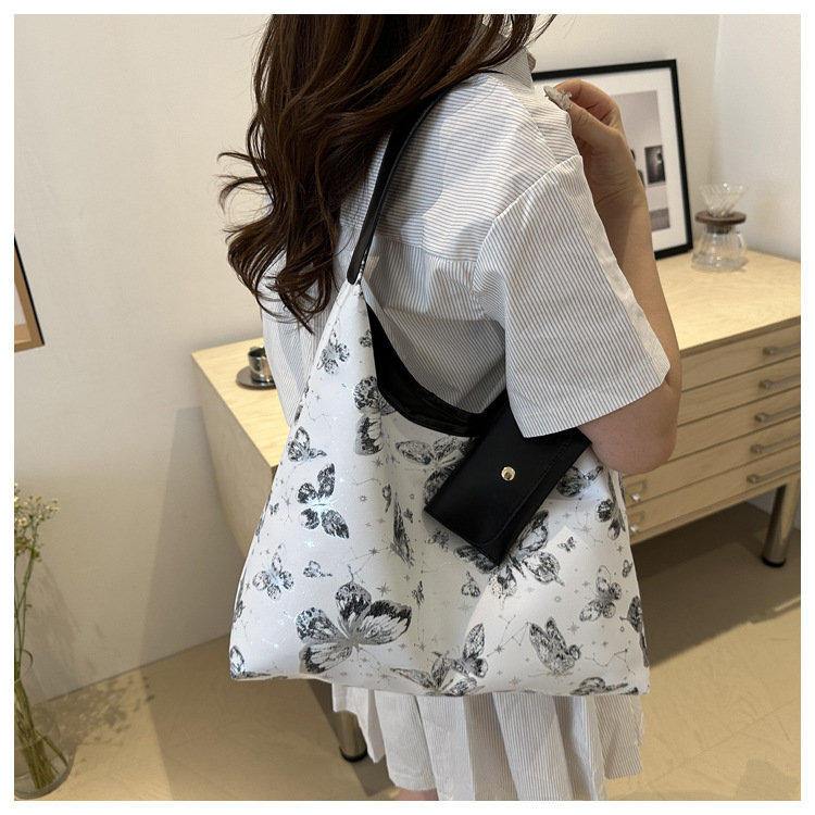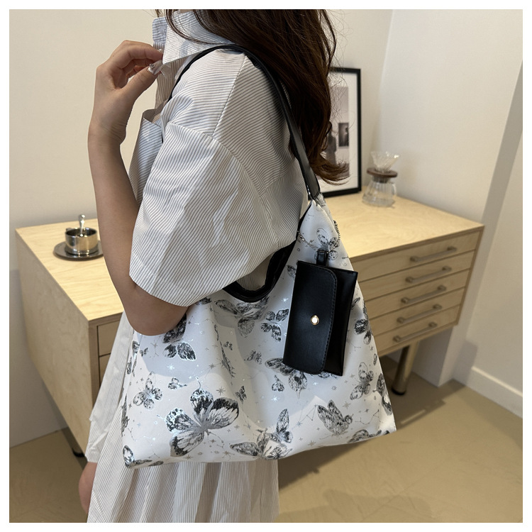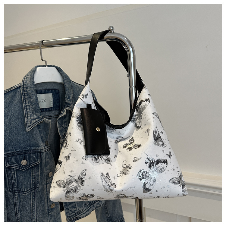 인쇄 된 나비 대용량 여성 2024 여름 독특한 새로운 세련된 캐주얼 통근 토트 숄더 언더암 가방