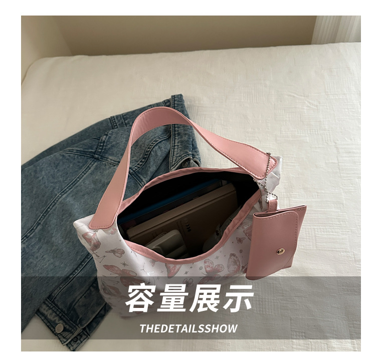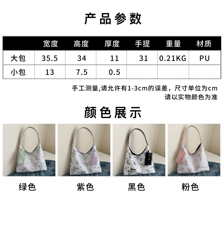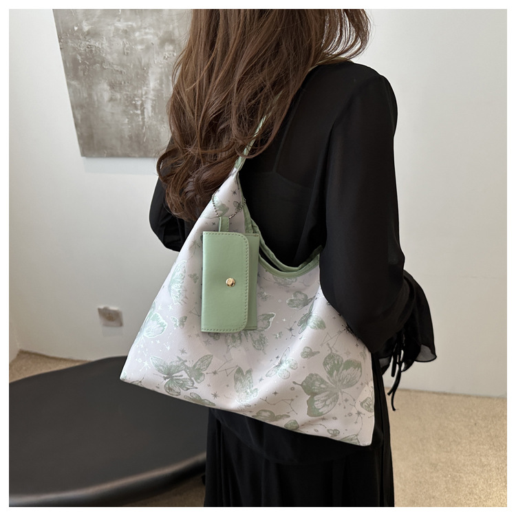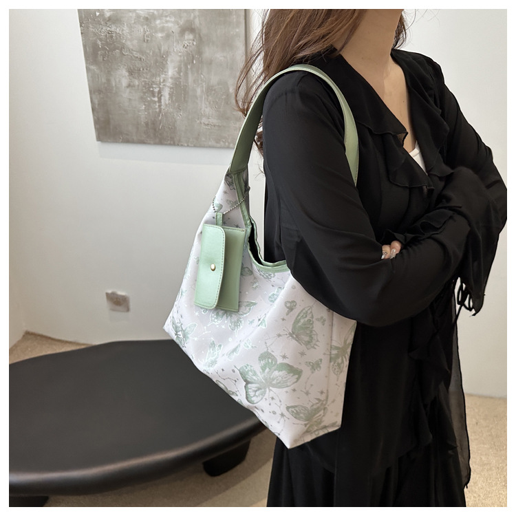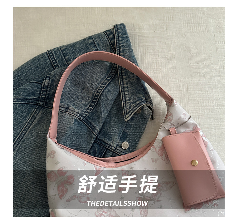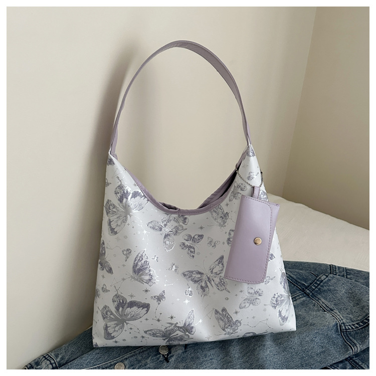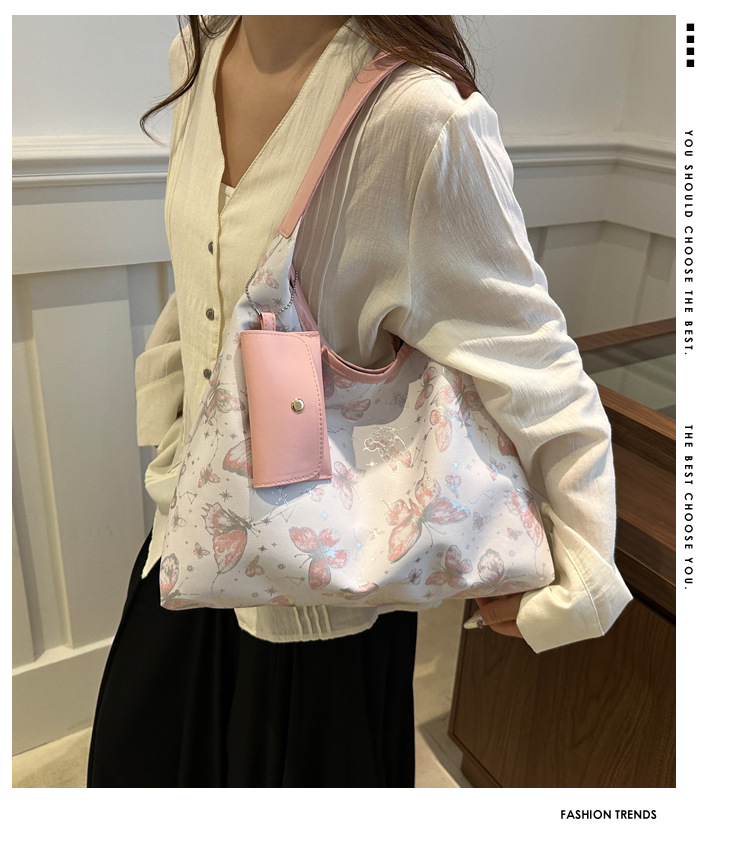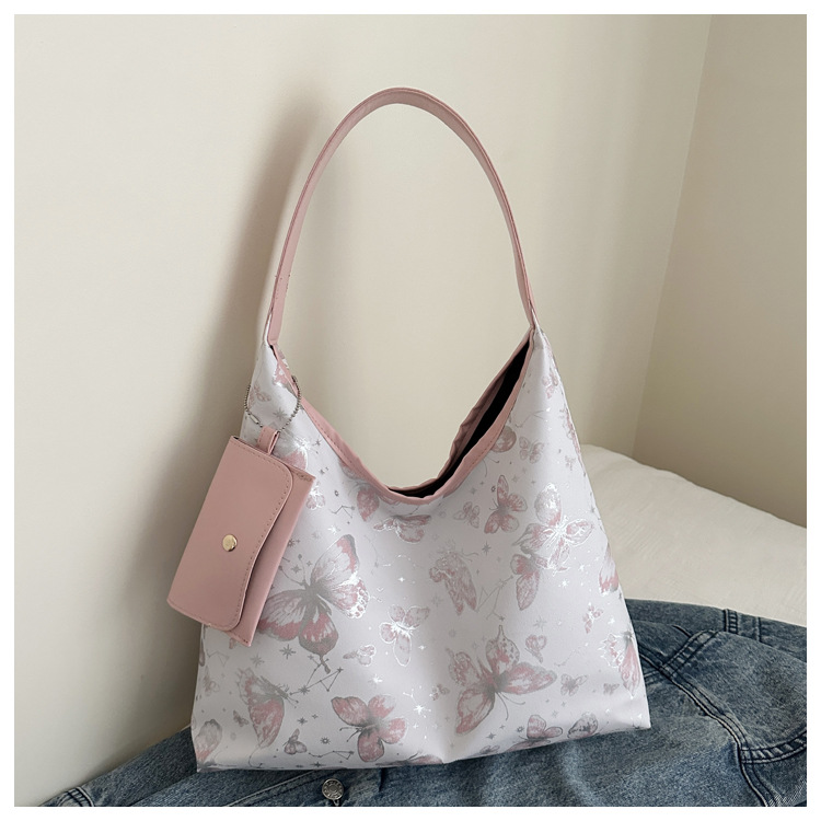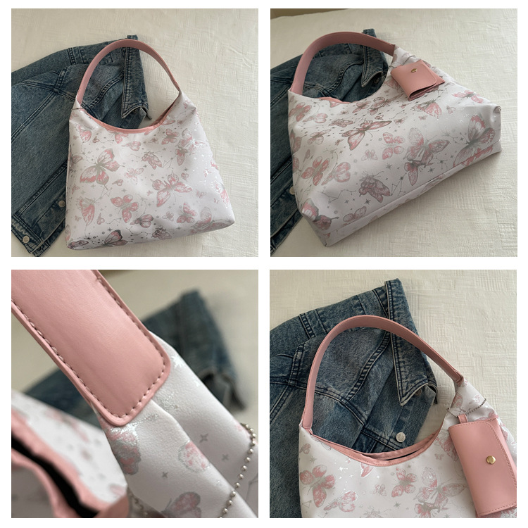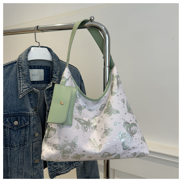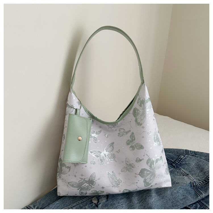 인쇄 된 나비 대용량 여성 2024 여름 독특한 새로운 세련된 캐주얼 통근 토트 숄더 언더암 가방