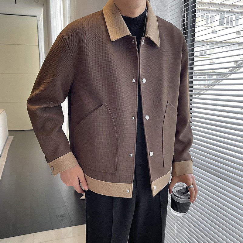 재킷 남자의 봄과 가을 2024 새로운 플러스 사이즈 긴 소매 재킷 러피 잘 생긴 컬러 매칭 옷깃 하이 엔드 재킷 남성 패션스토어 가기