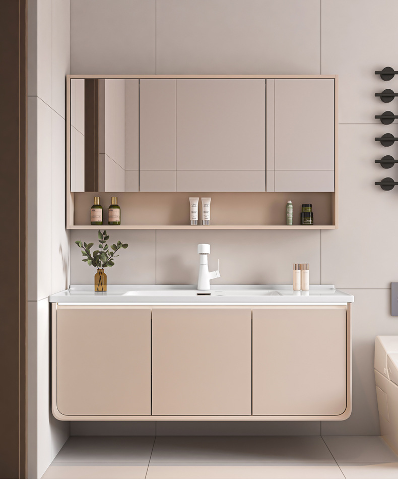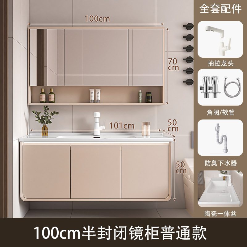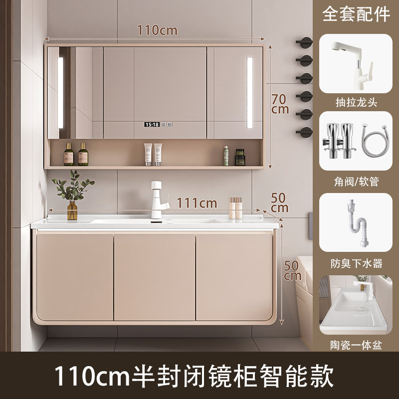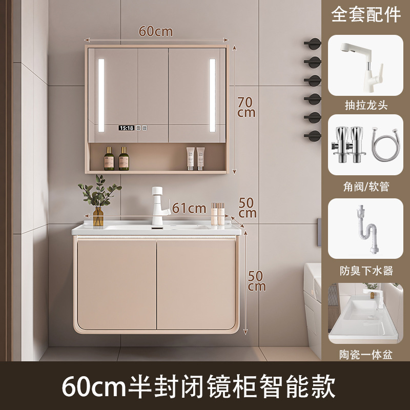 세척 분지 캐비닛 조합 오크 욕실 캐비닛 세라믹 통합 분지 2024 새로운 크림 컬러 세척 테이블