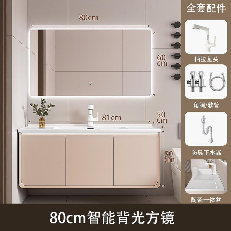 세척 분지 캐비닛 조합 오크 욕실 캐비닛 세라믹 통합 분지 2024 새로운 크림 컬러 세척 테이블스토어 가기