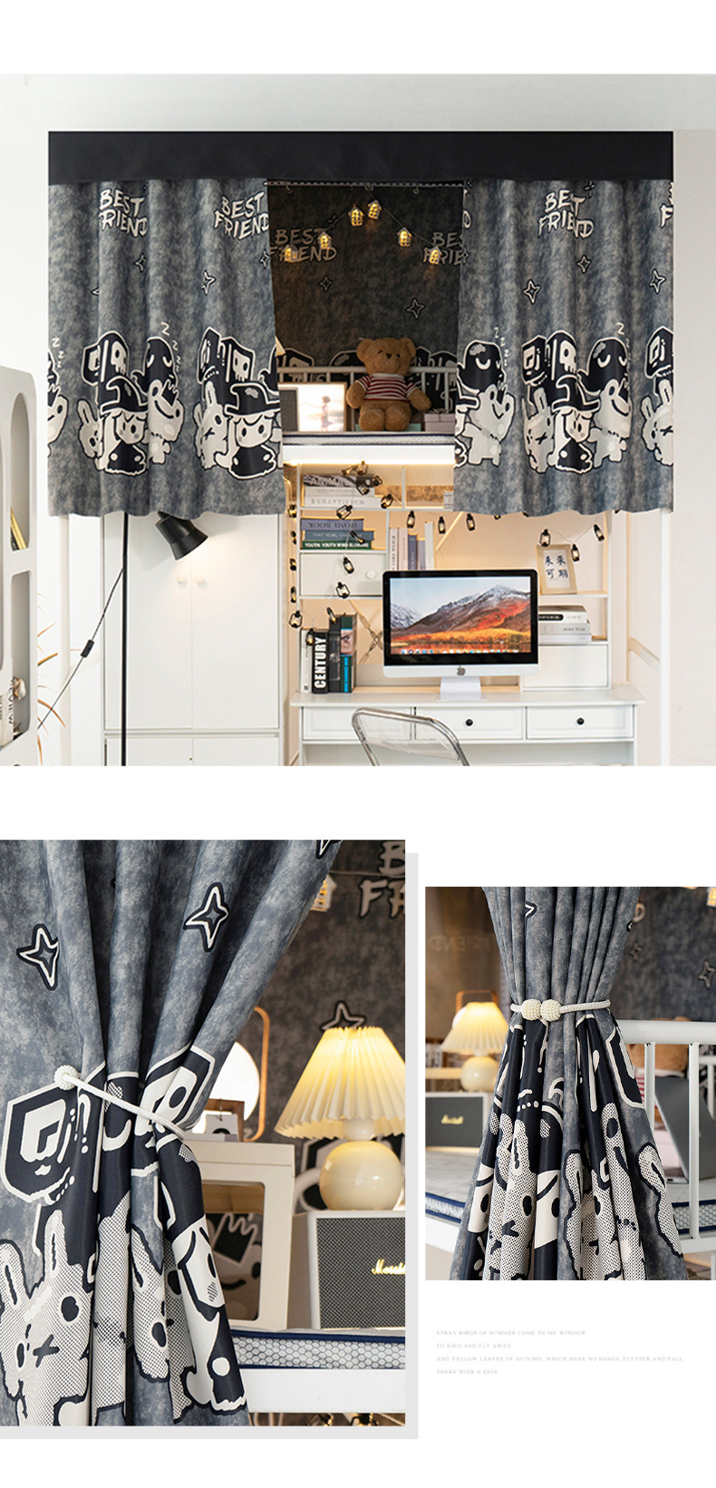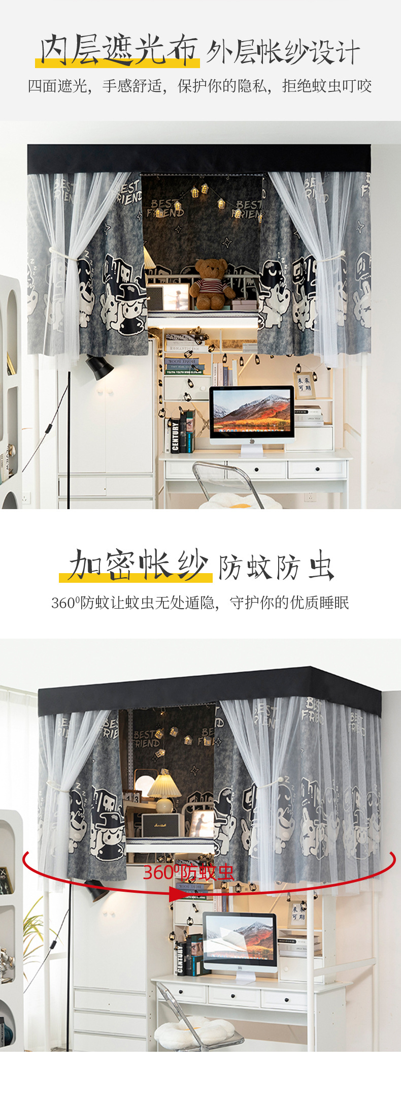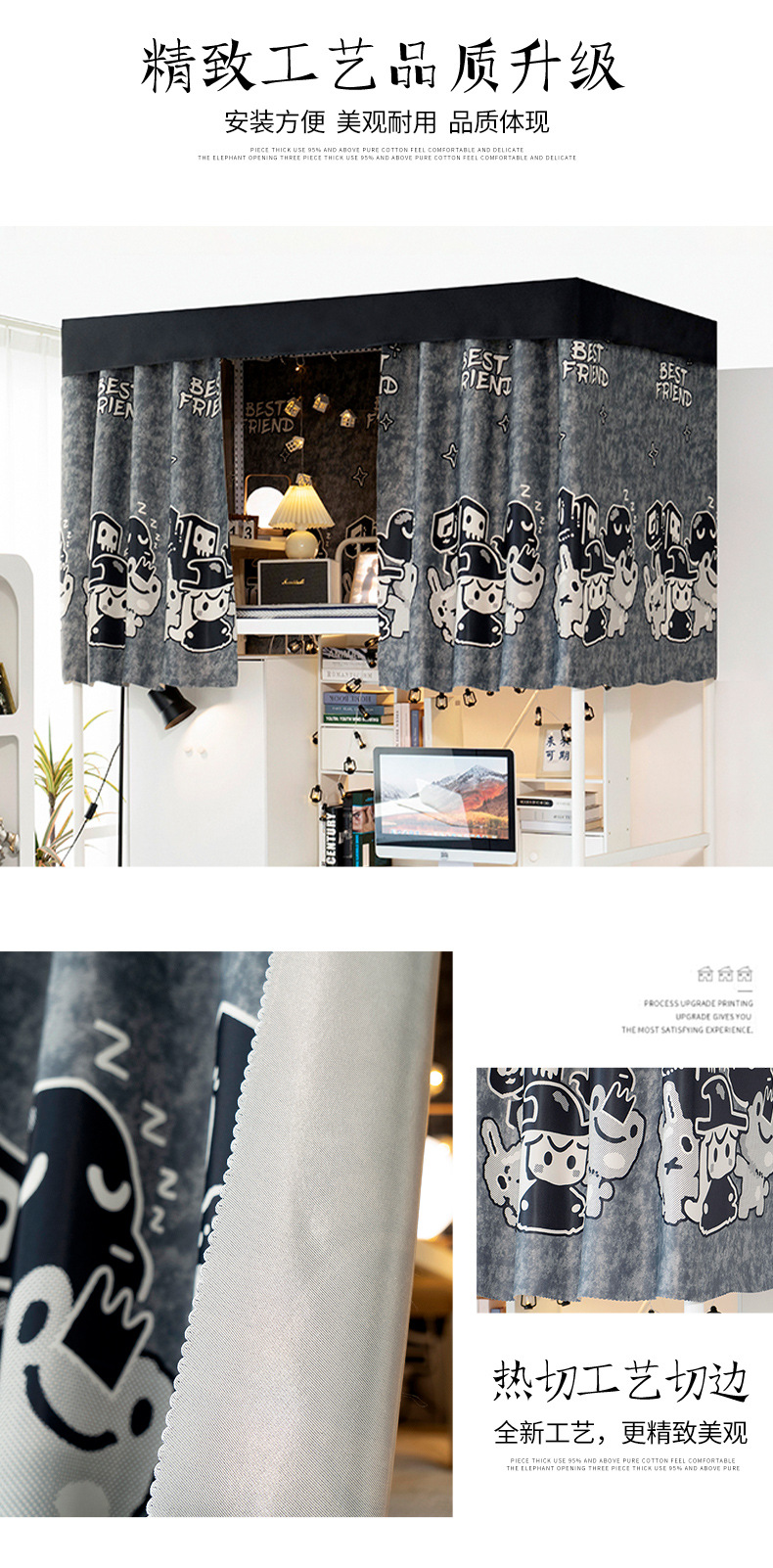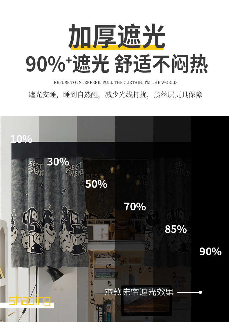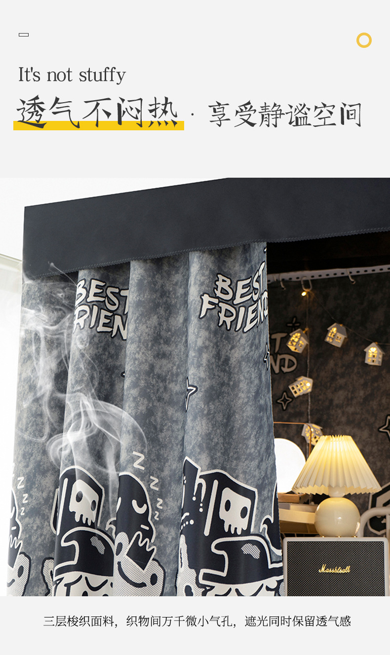 기숙사 두꺼운 그늘진 침대 커튼 커튼 대학생 기숙사 상부 침대 낮은 침대 침대 내시경 불투명 만화 커튼스토어 가기