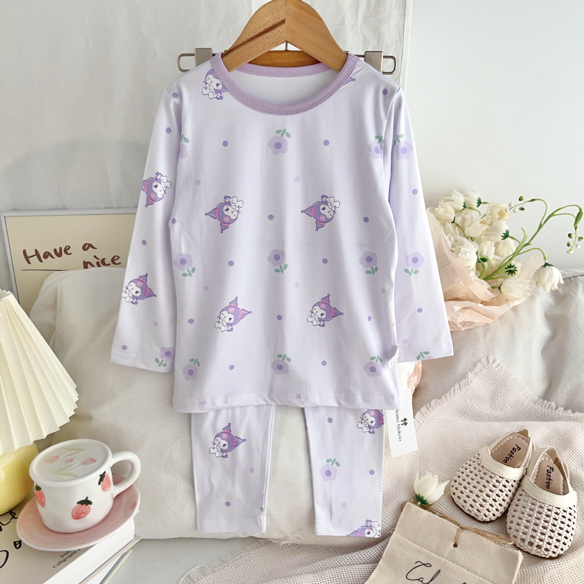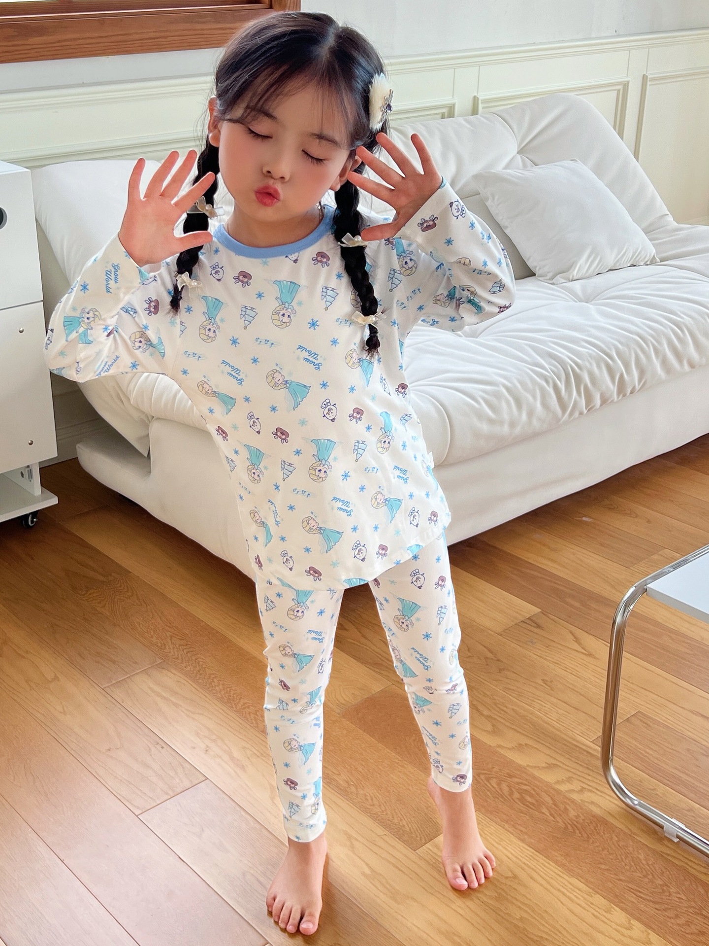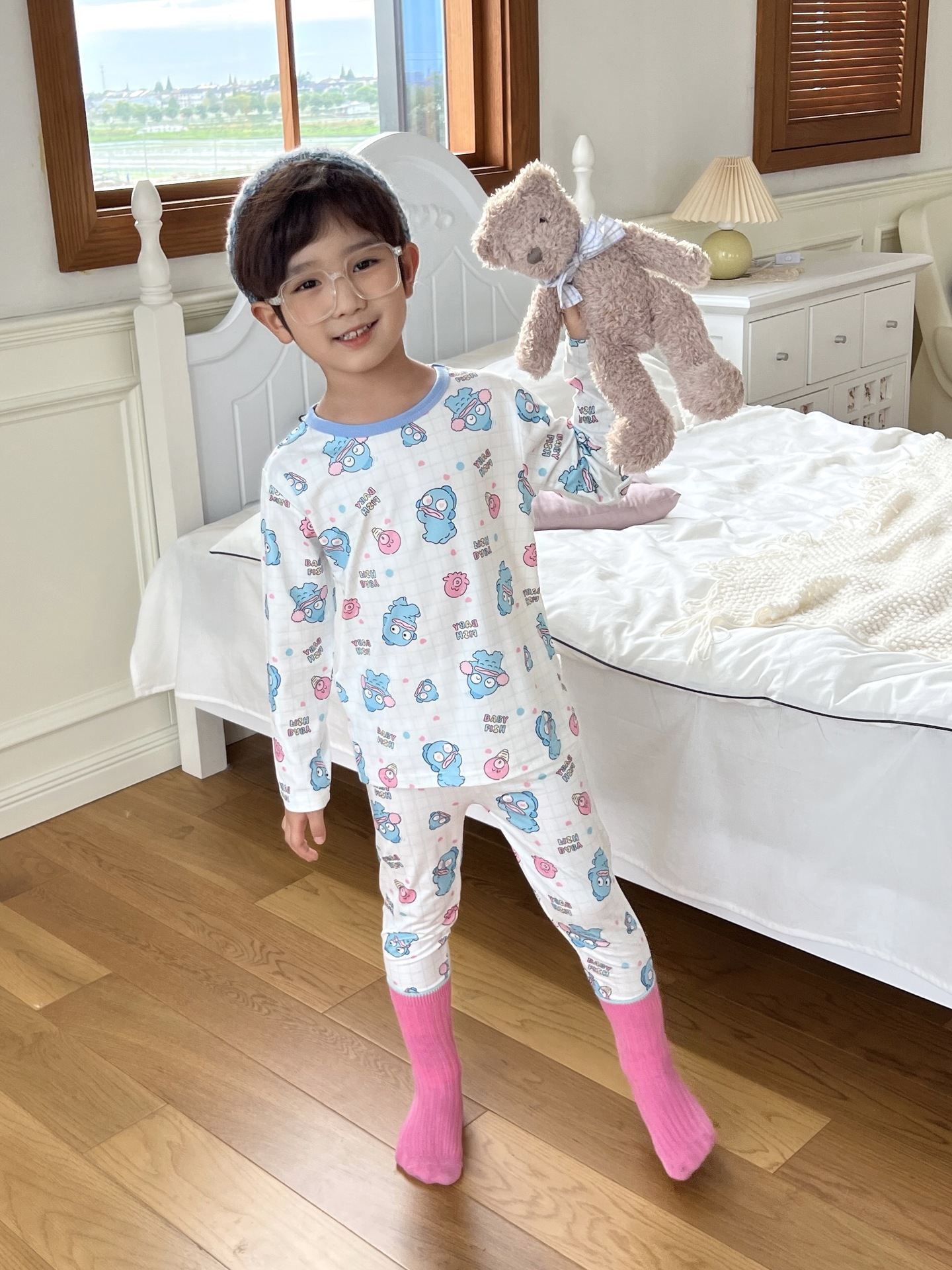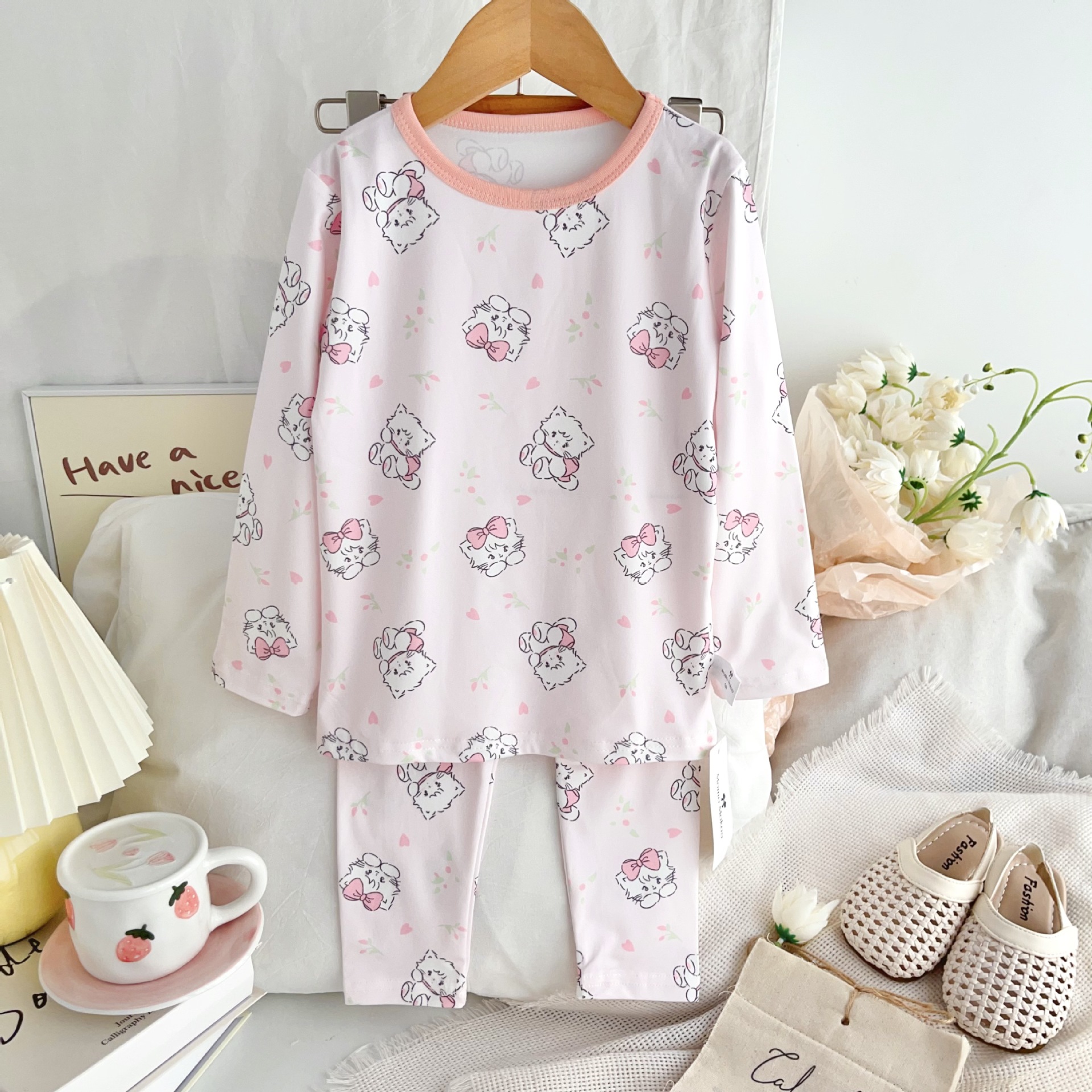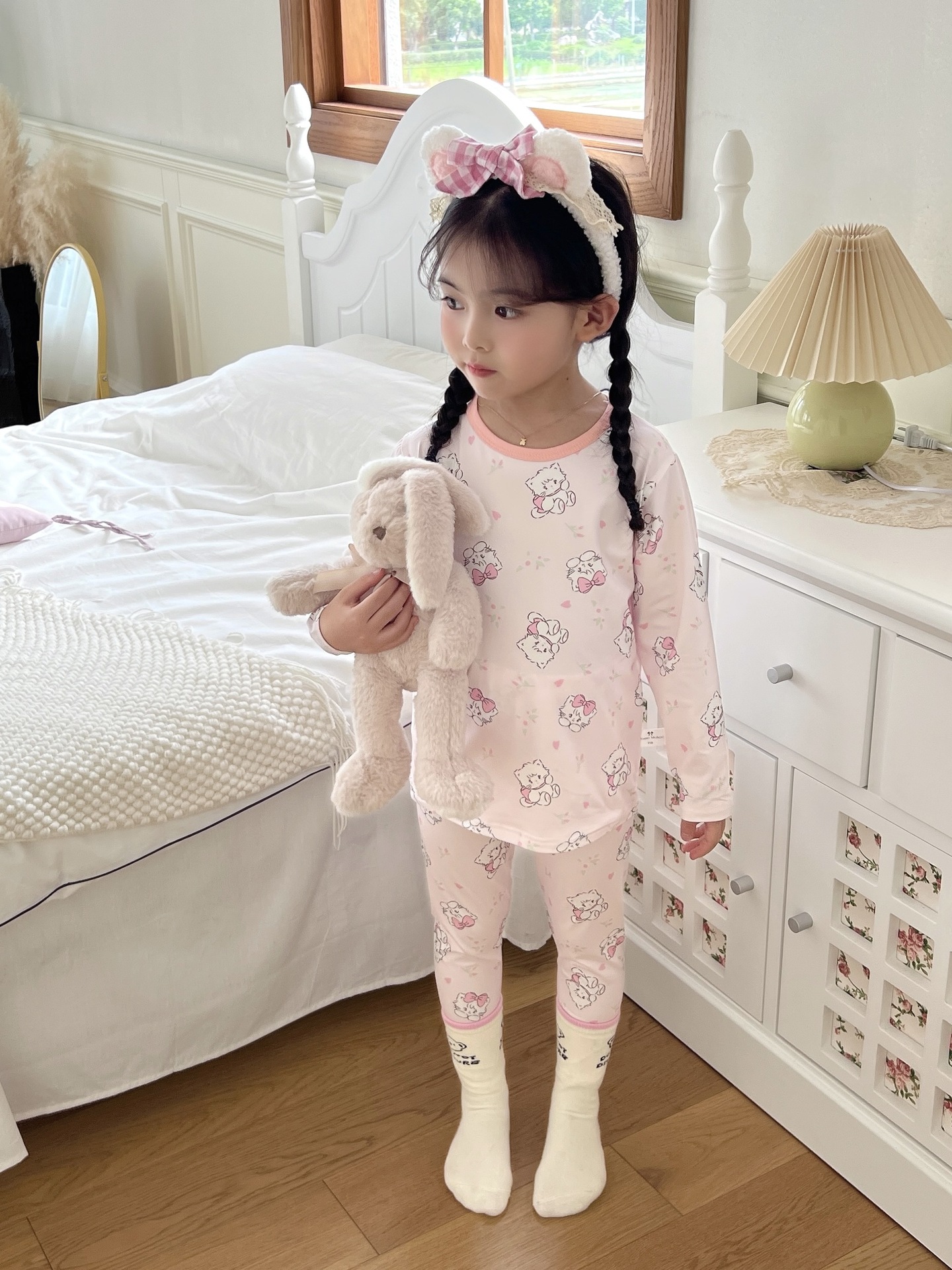 24 가을 남성과 여성을위한 새로운 어린이 잠옷 어린이 벨벳 라이크라 홈 의류 세트 전체 인쇄 만화 얇은 긴 소매 달콤한스토어 가기