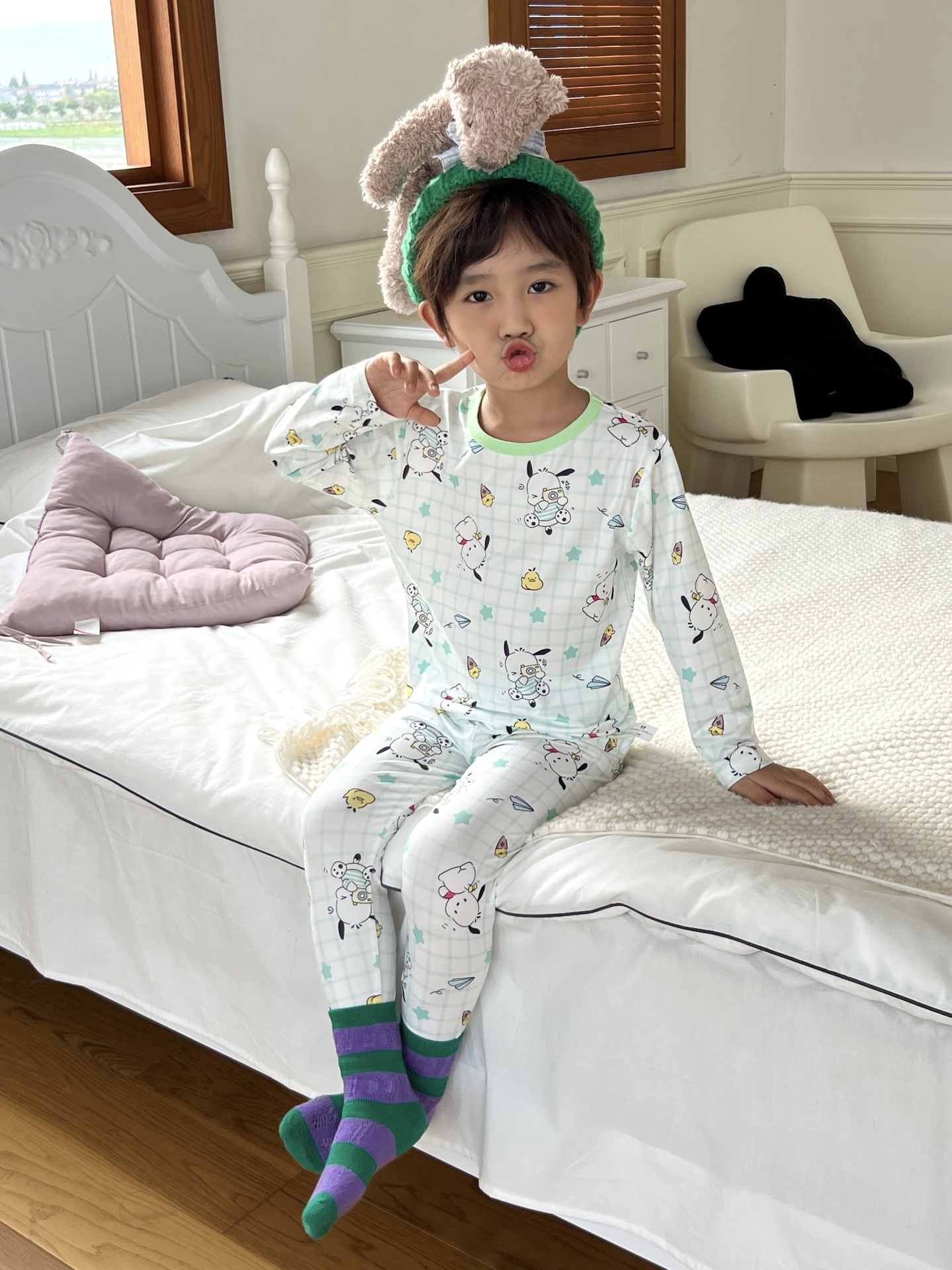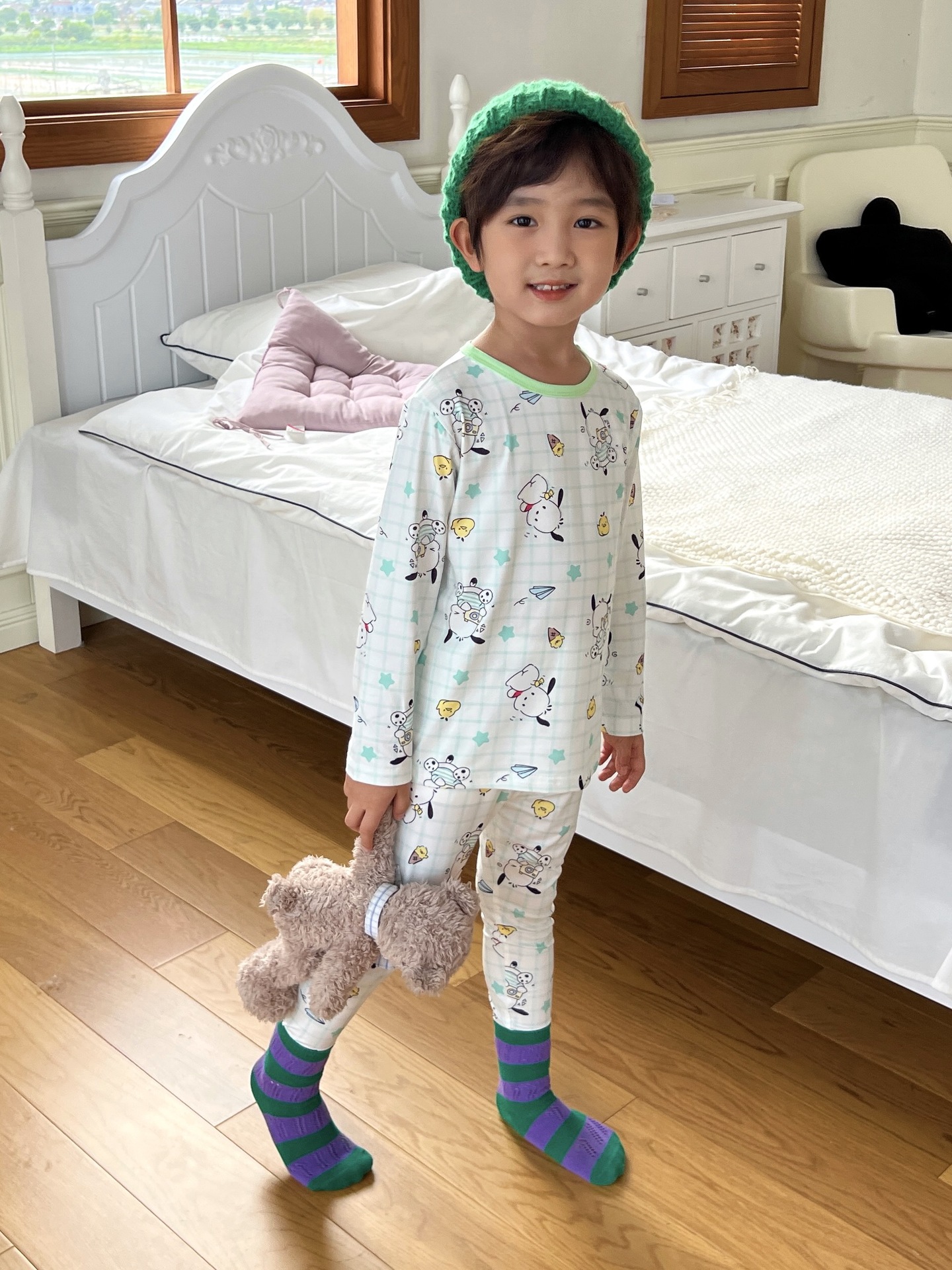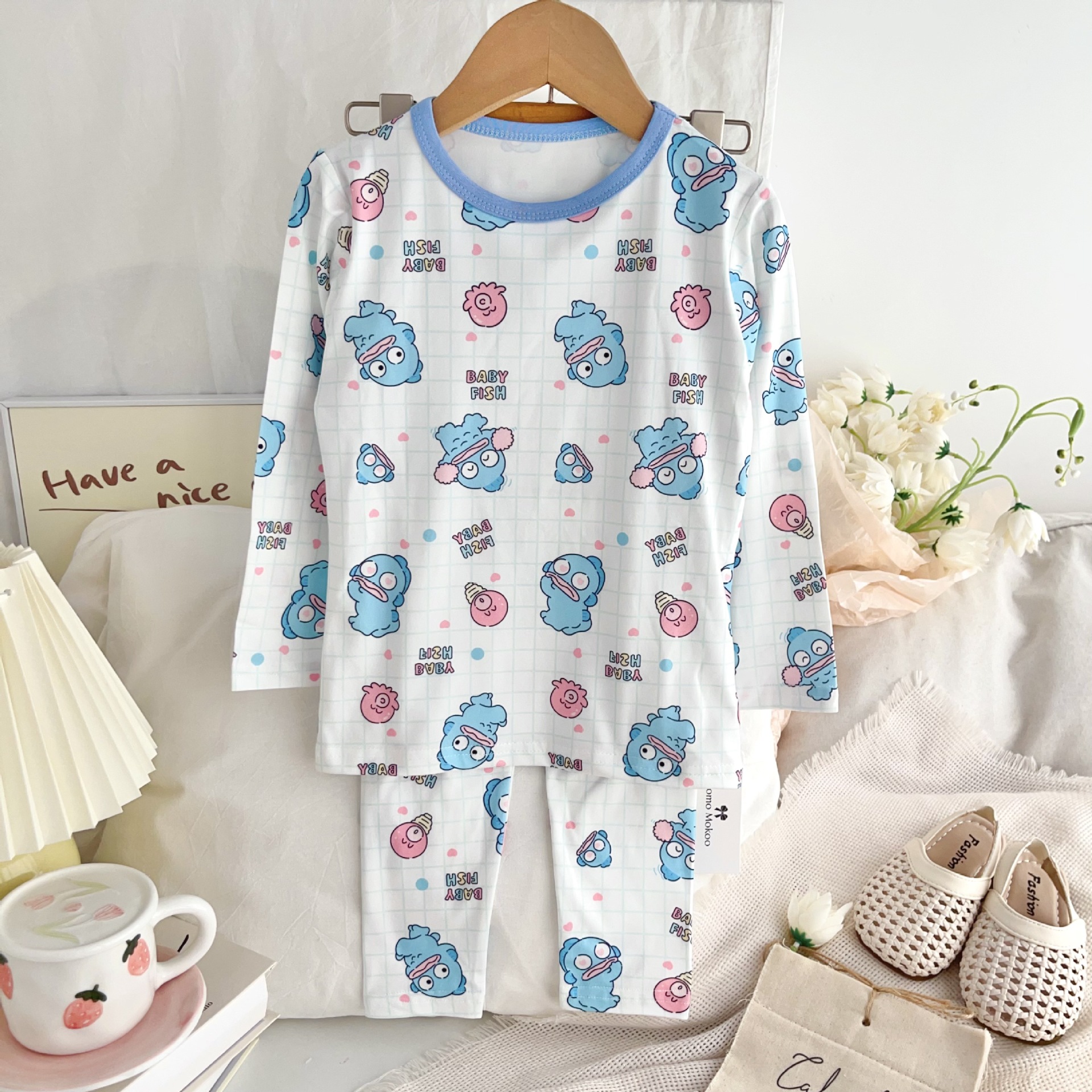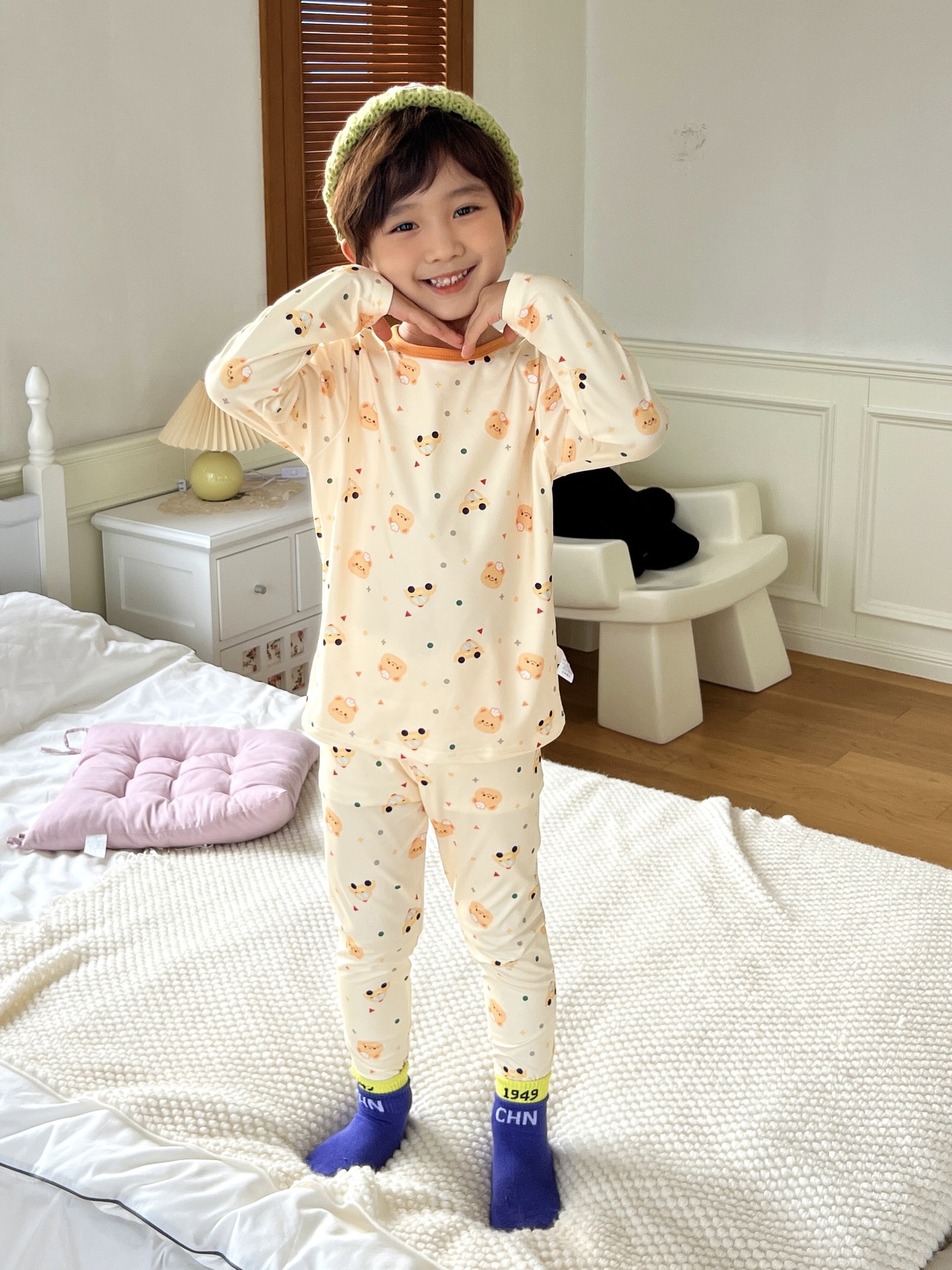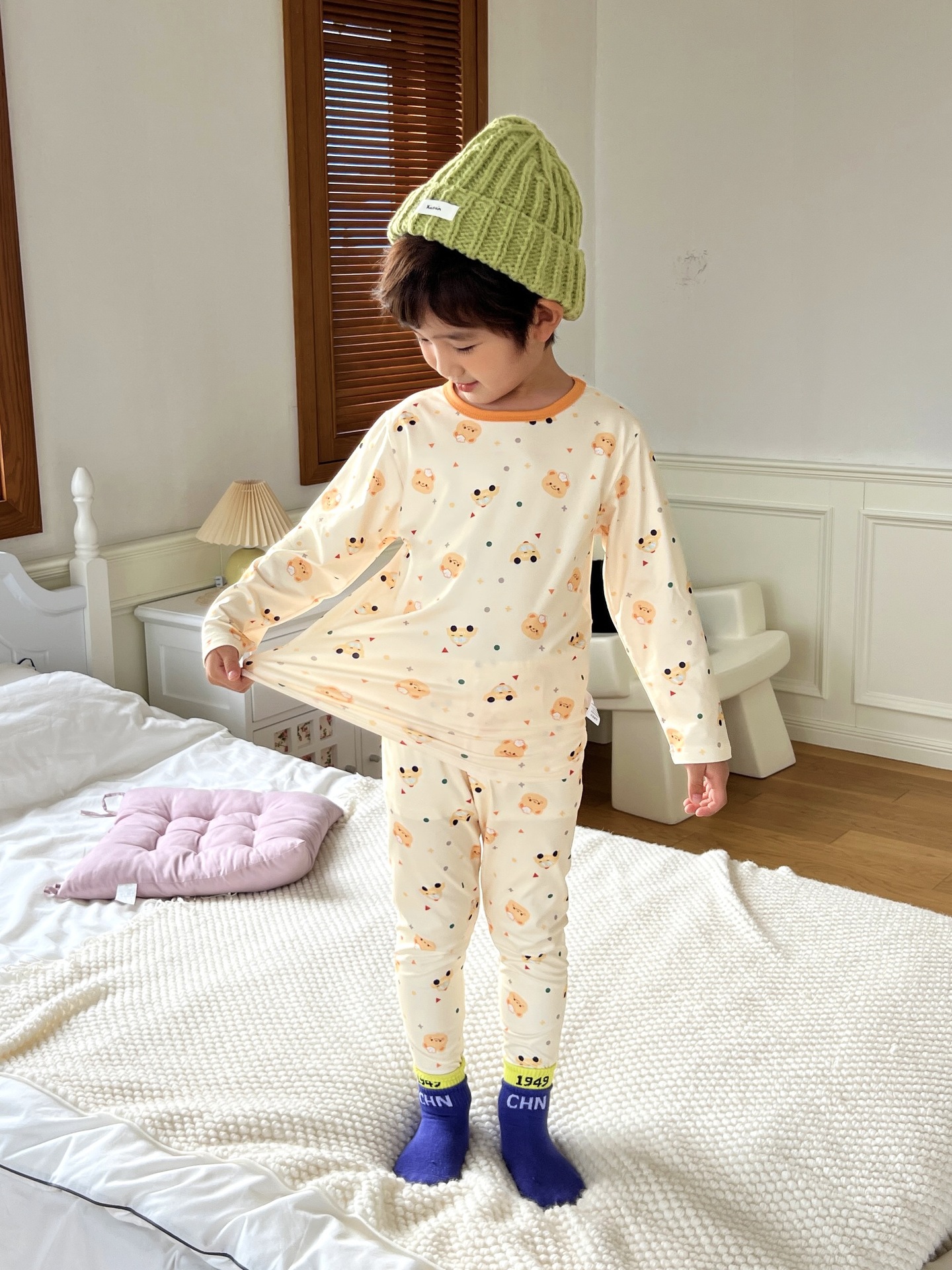 24 가을 남성과 여성을위한 새로운 어린이 잠옷 어린이 벨벳 라이크라 홈 의류 세트 전체 인쇄 만화 얇은 긴 소매 달콤한스토어 가기