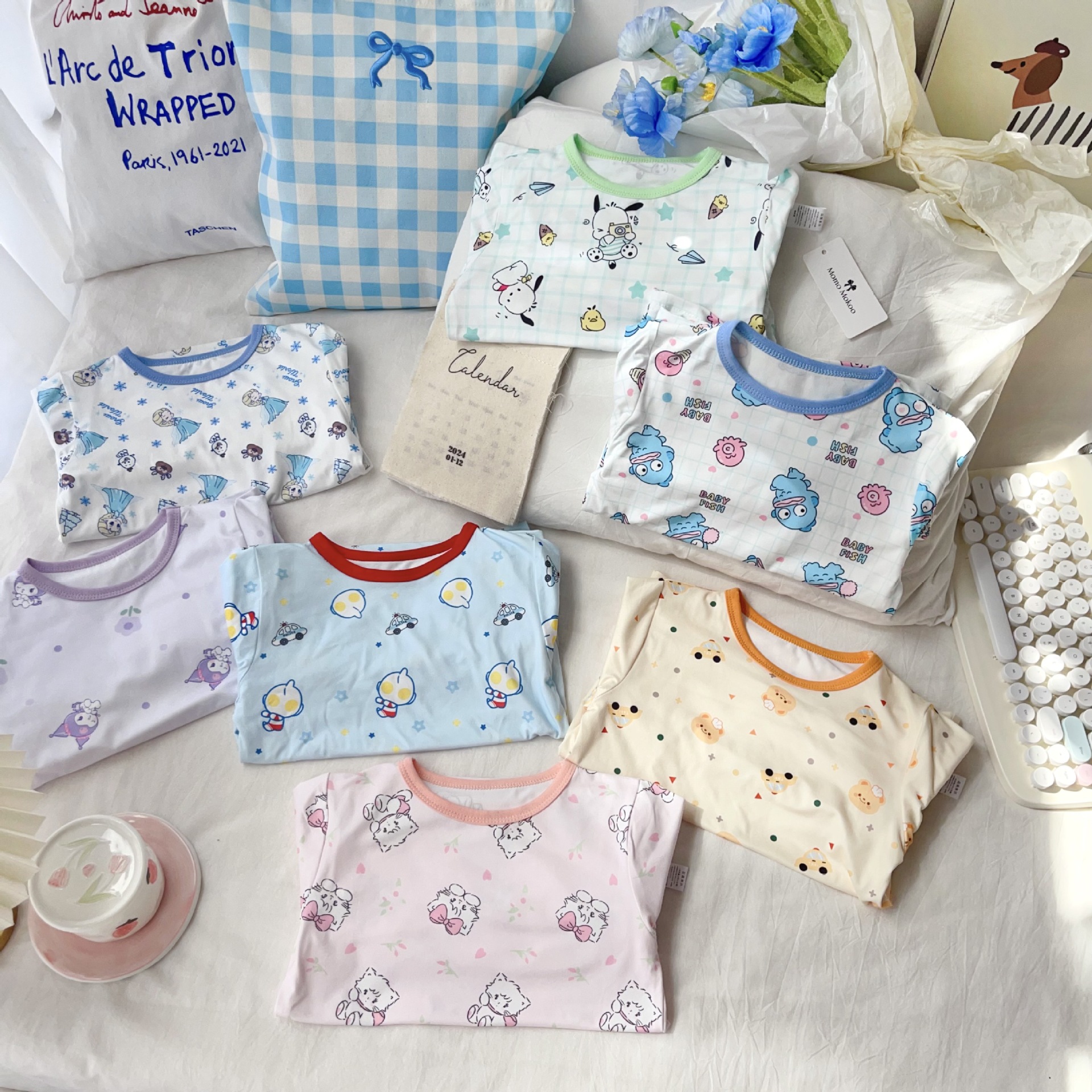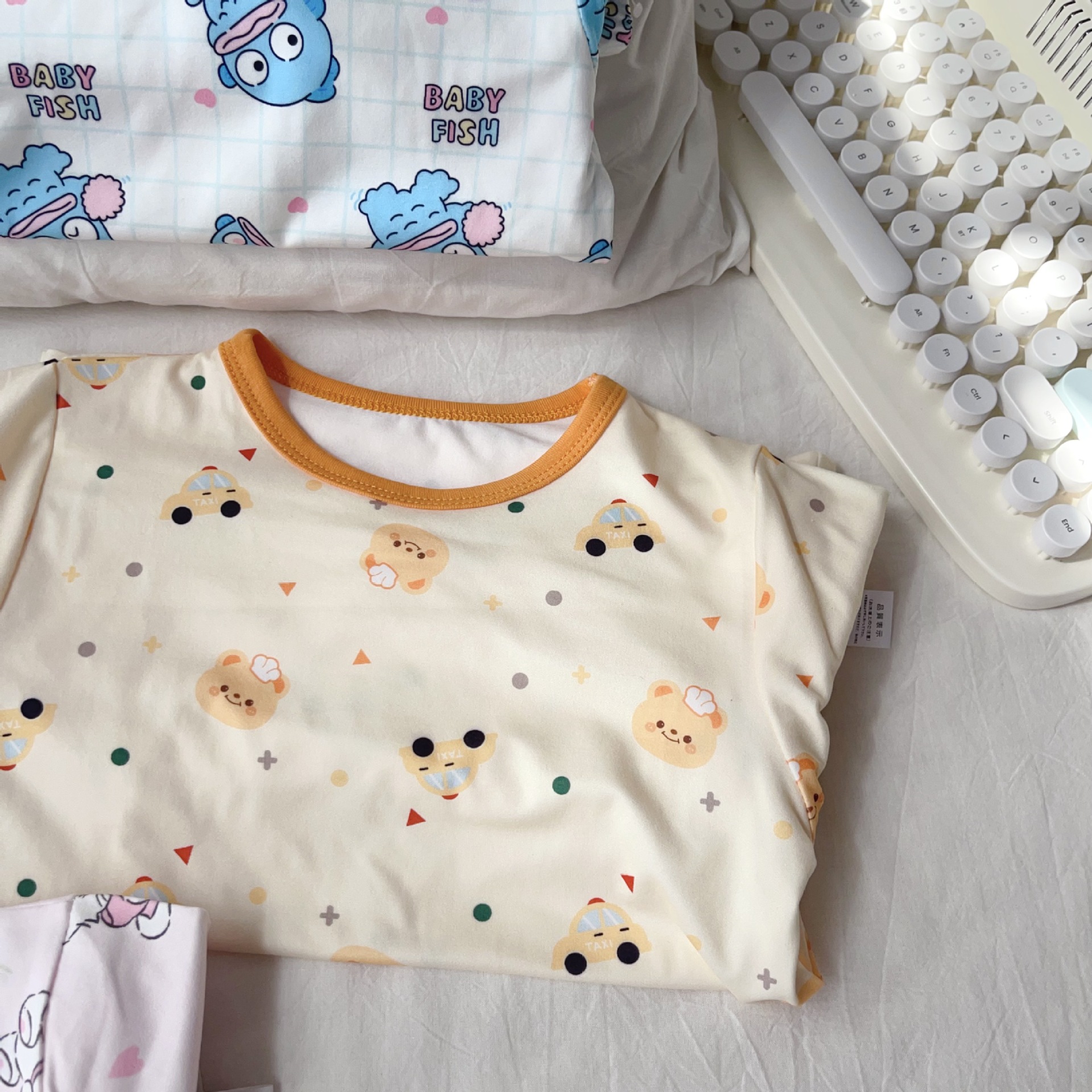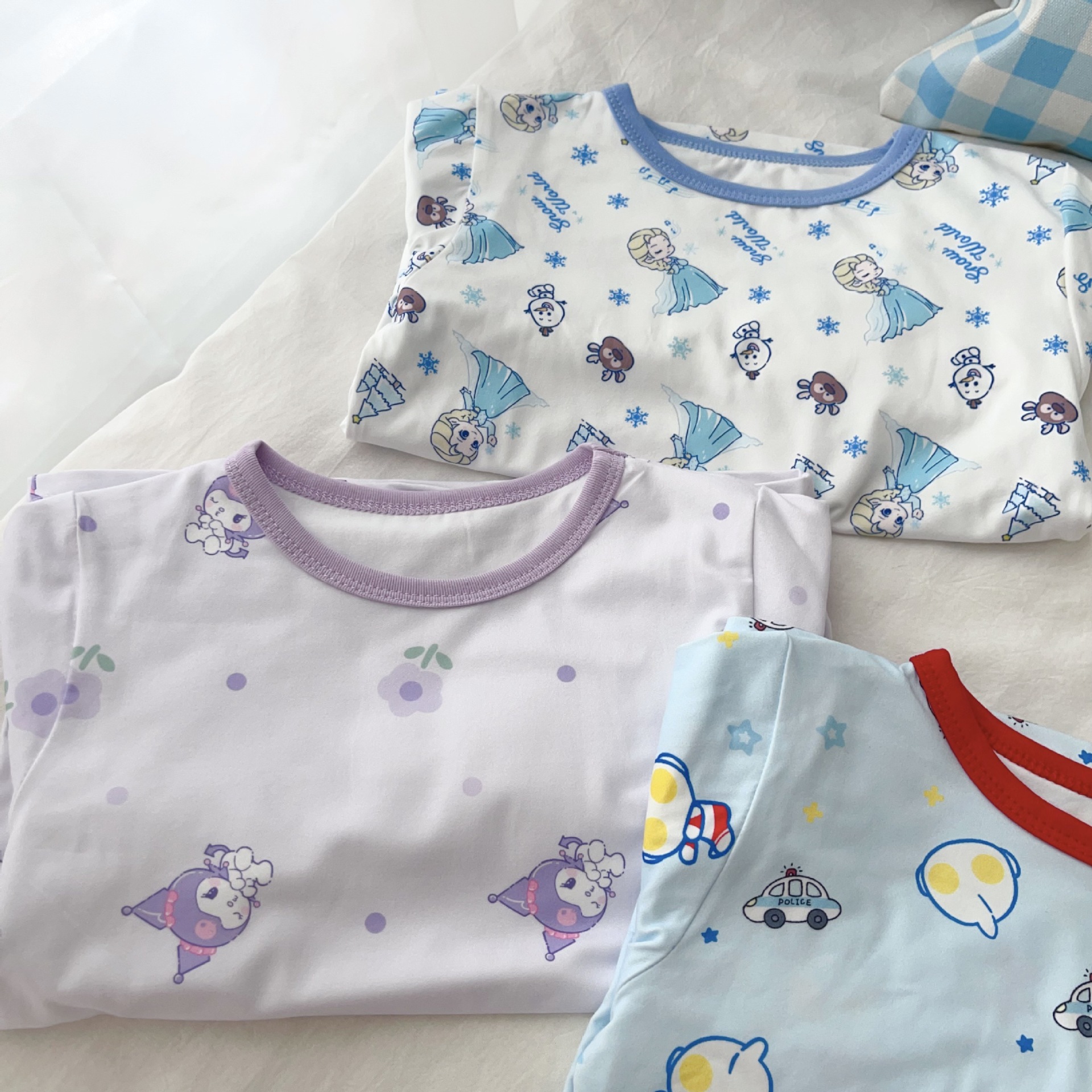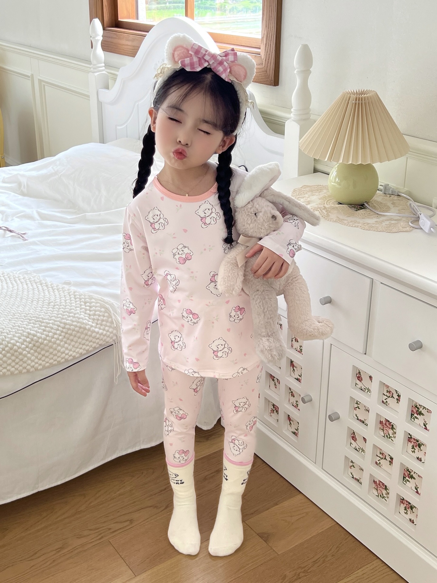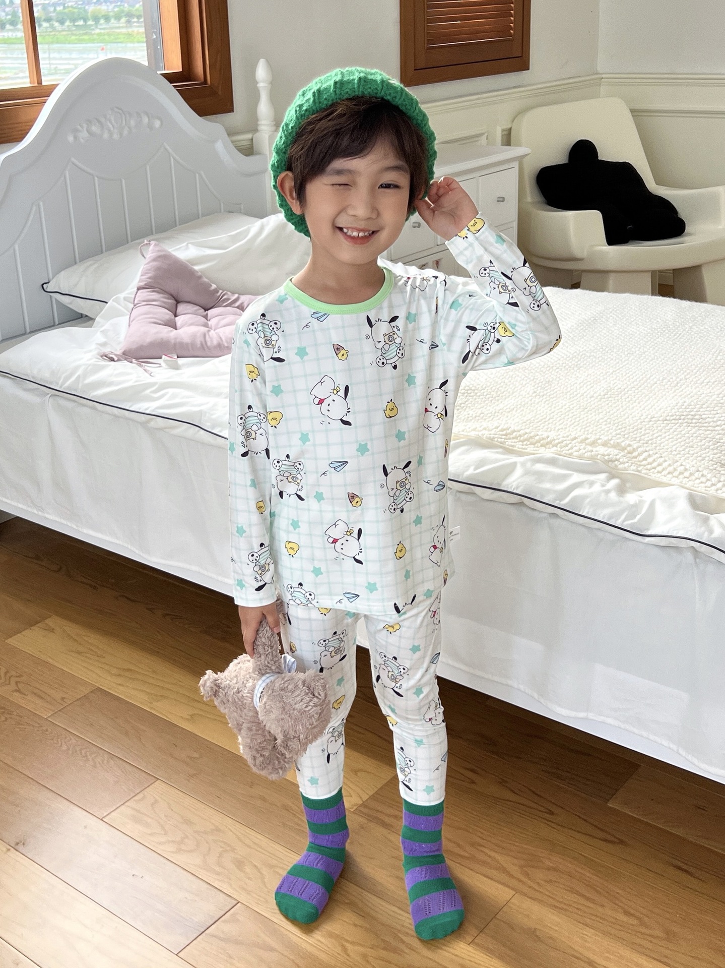 24 가을 남성과 여성을위한 새로운 어린이 잠옷 어린이 벨벳 라이크라 홈 의류 세트 전체 인쇄 만화 얇은 긴 소매 달콤한스토어 가기