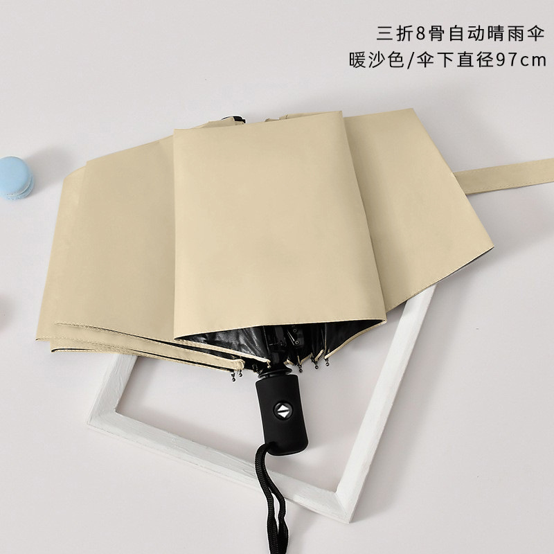 • 8602 3단 8본 블랙 코팅 자동 우산 - 미색