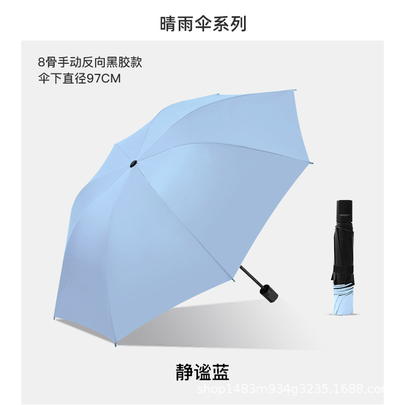 • T806 3단 8본 비닐 수동 우산 - 조용한 블루