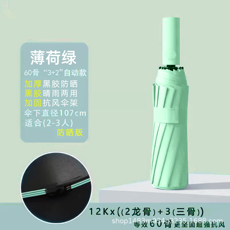 • 893 3단 60본 블랙 코팅 자동 우산 - 블랙