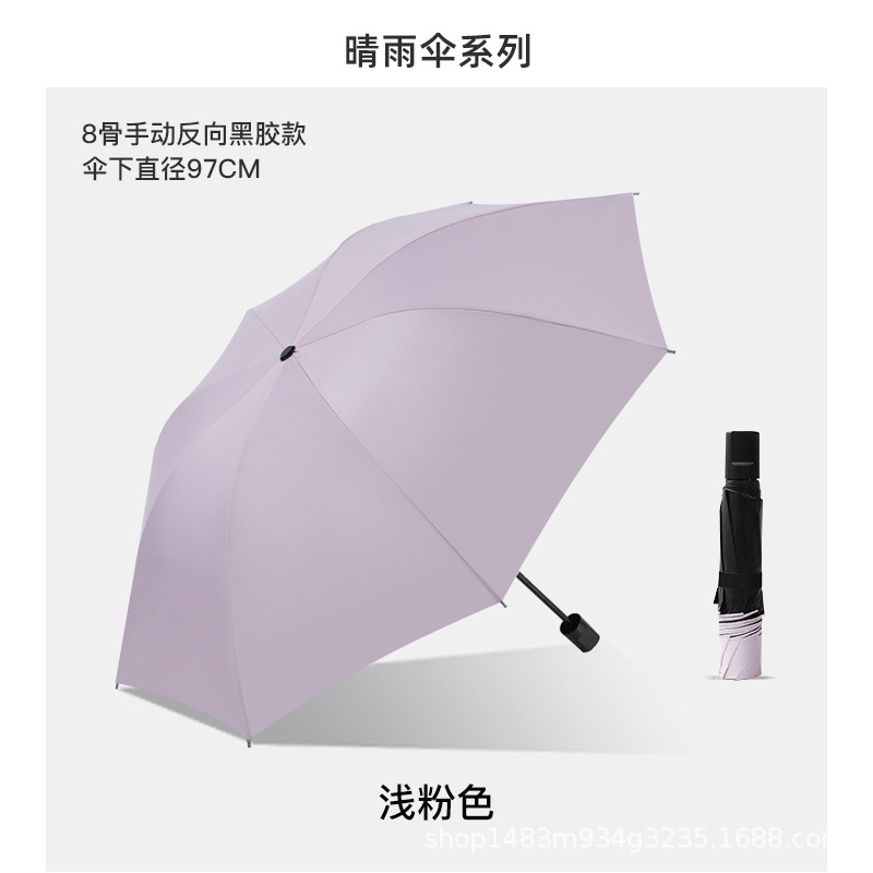 • T666 퍼플 - 3단 8각 우산, 블랙 코팅 고리형 자동 우산