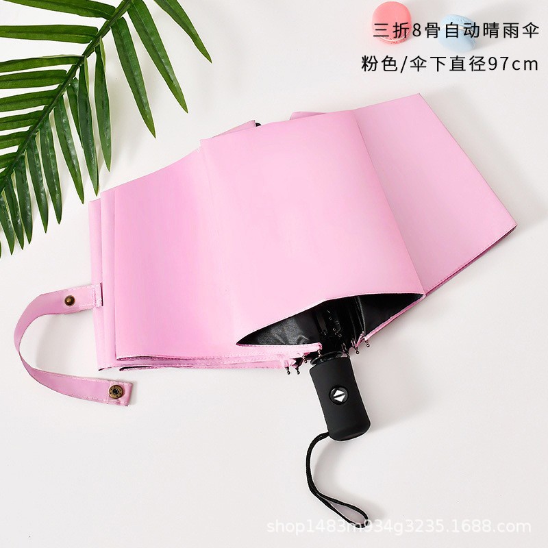 • 8602 3단 8본 블랙 코팅 자동 우산 - 핑크
