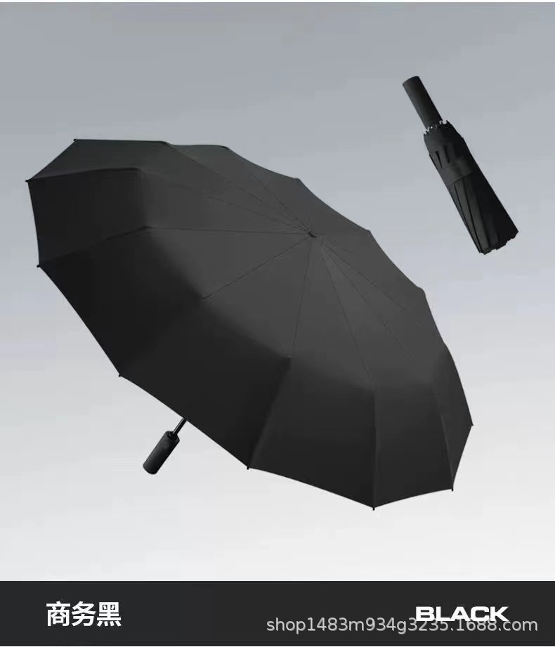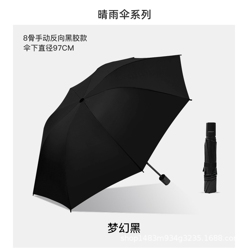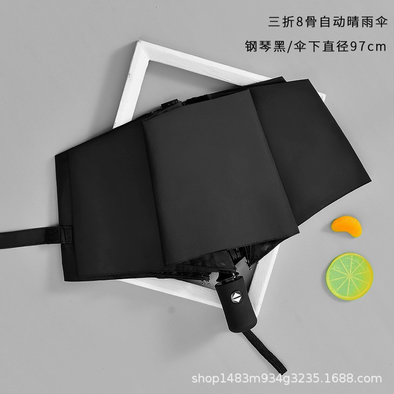 자동 접이식 강화 및 두꺼운 우산, 양용(맑은 날과 비오는 날) 블랙 글로시 파라솔, 광고용 로고 인쇄 가능, 도매스토어 가기