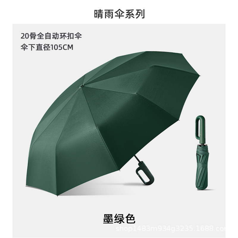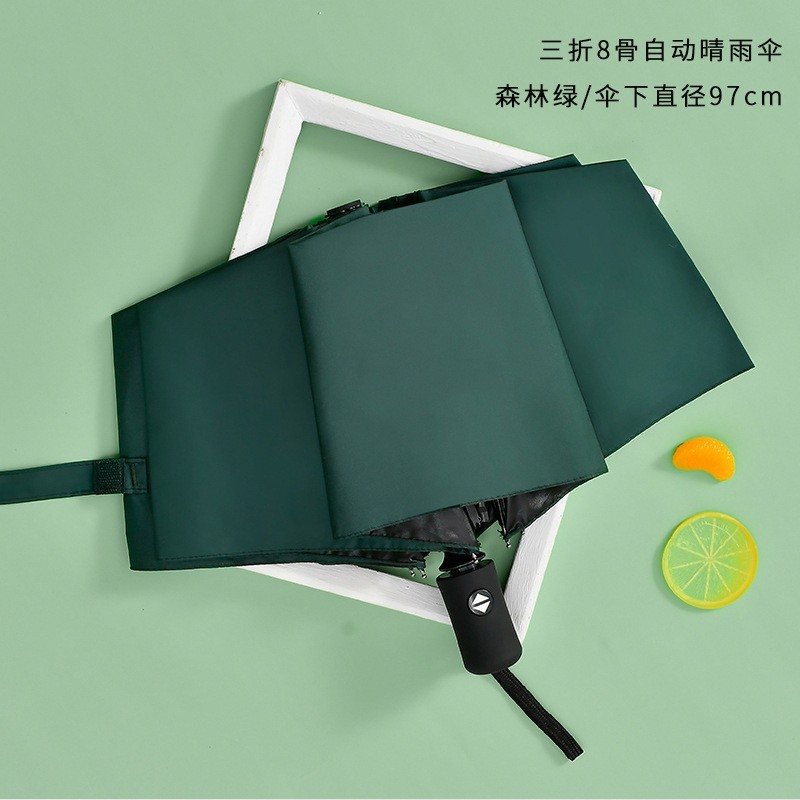 • T666 짙은 녹색 3단 8본 비닐 링 버클 자동 우산