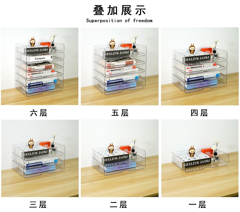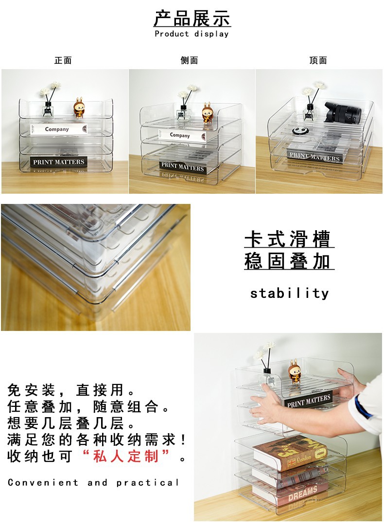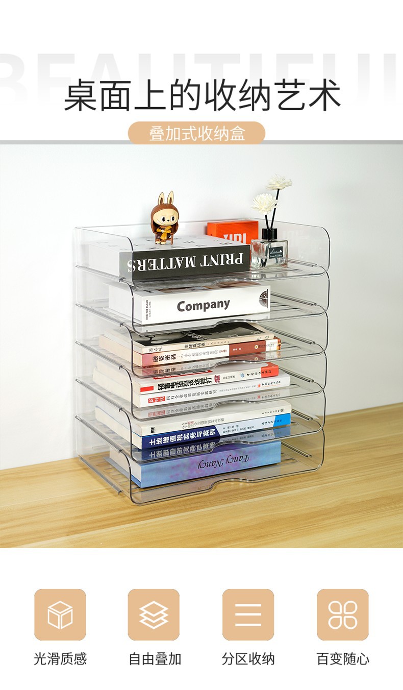 A4 파일 저장 상자 도매 쌓을 수있는 다층 아크릴 데스크 투명 데이터 데스크탑 오피스 랙