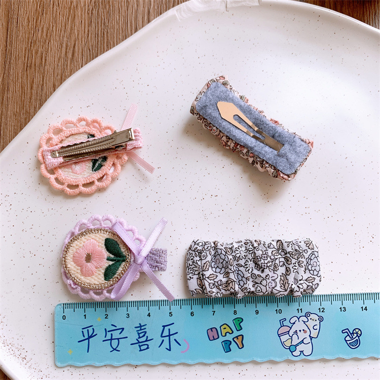 새로운 어린이 활 자수 꽃 헤어핀 달콤한 소녀의 주름 꽃 BB 클립 클립 클립 아기의 머리핀
