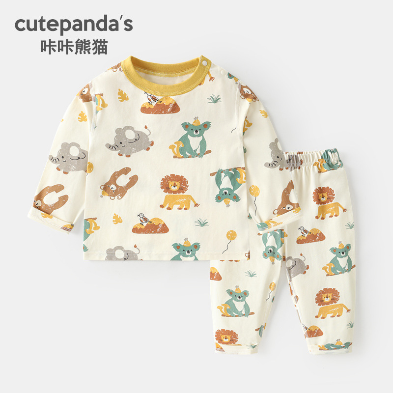 아기 뼈없는 가정 옷 세트 봄과 가을 어린이 잠옷 소년 소녀 아기 가을 옷과 바지 2 조각 가을 옷스토어 가기
