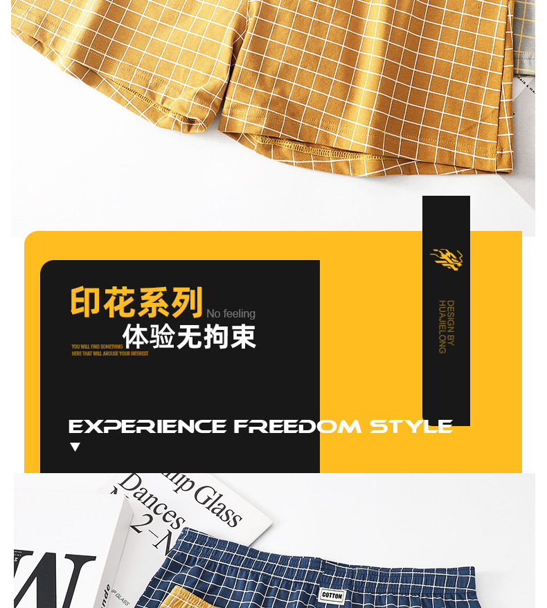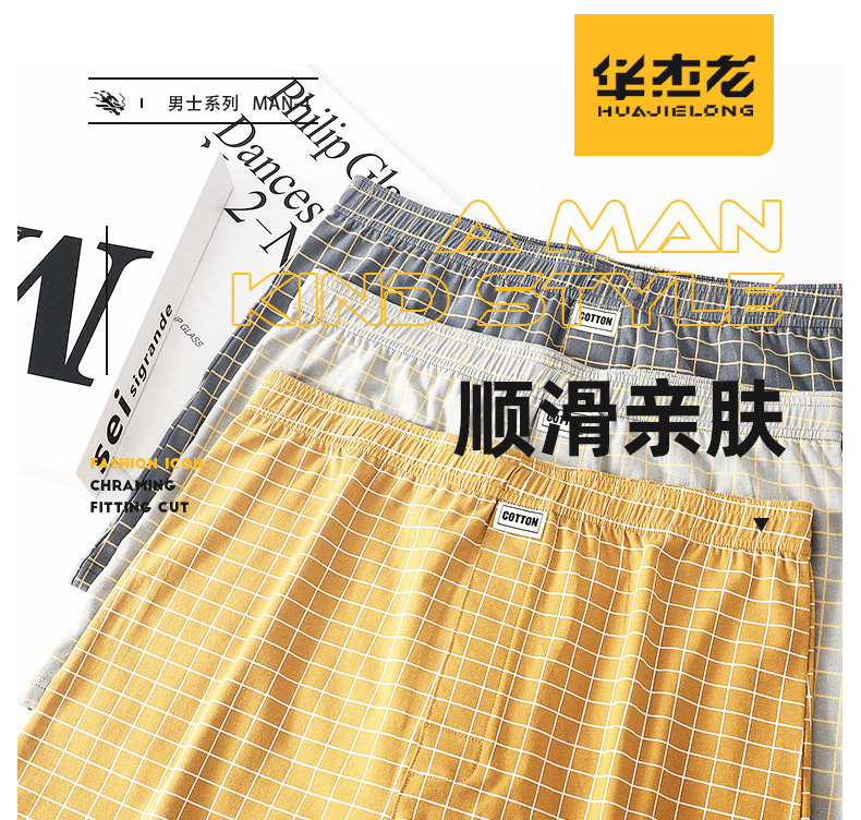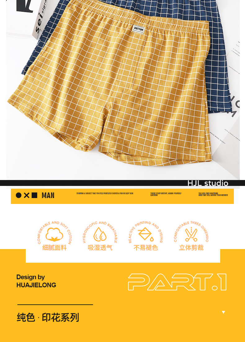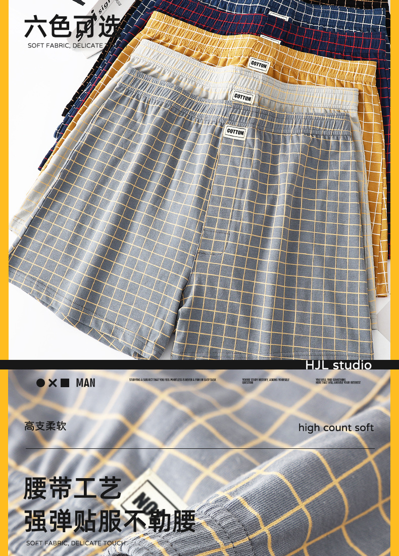 남성 속옷 Huajielong 남성 격자 무늬 권투 선수 코튼 복서 느슨한 얇은 통기성 화살표 바지