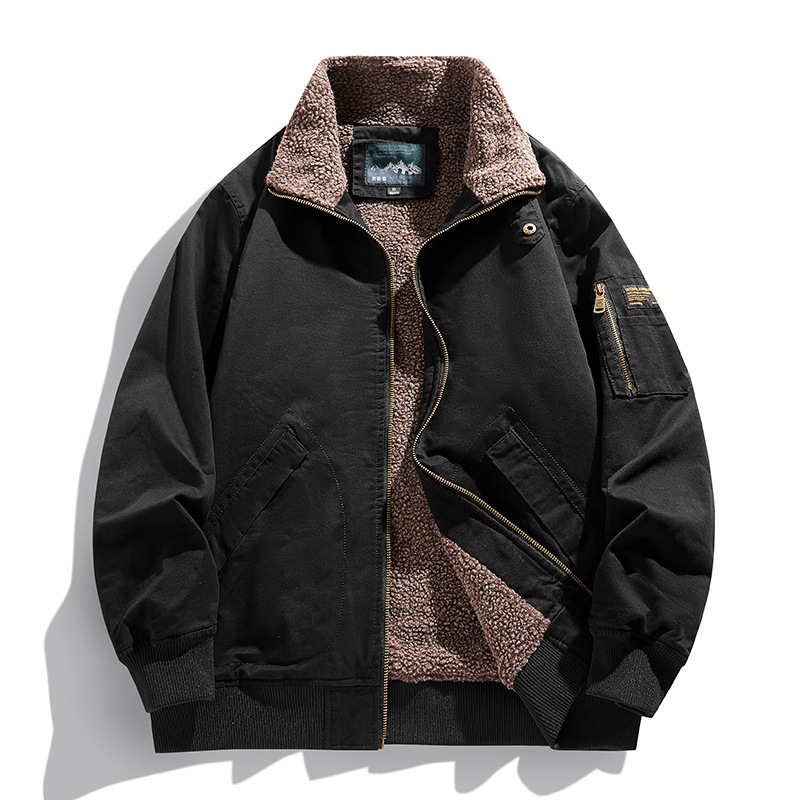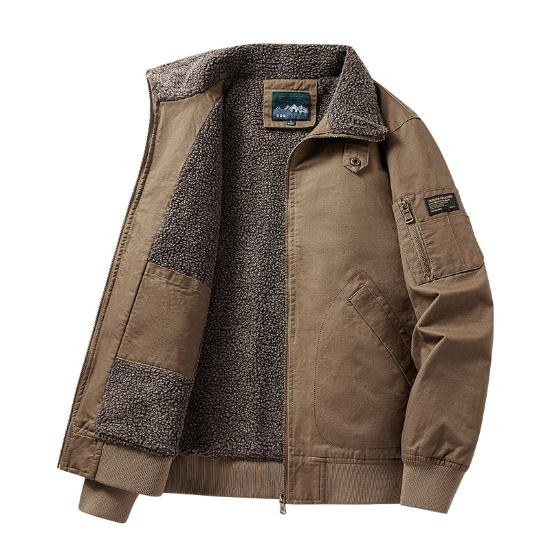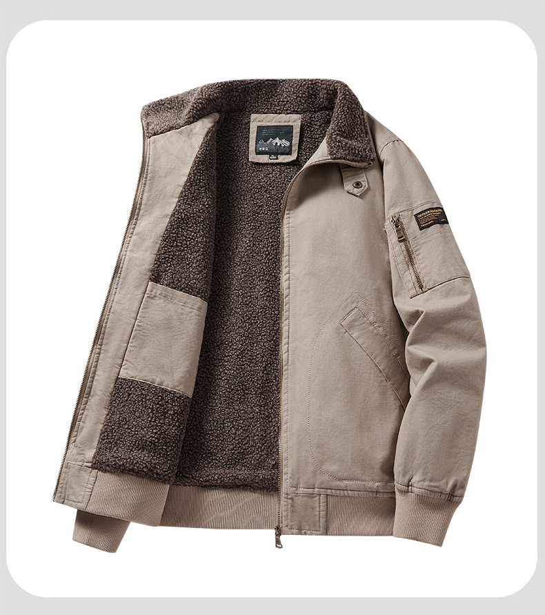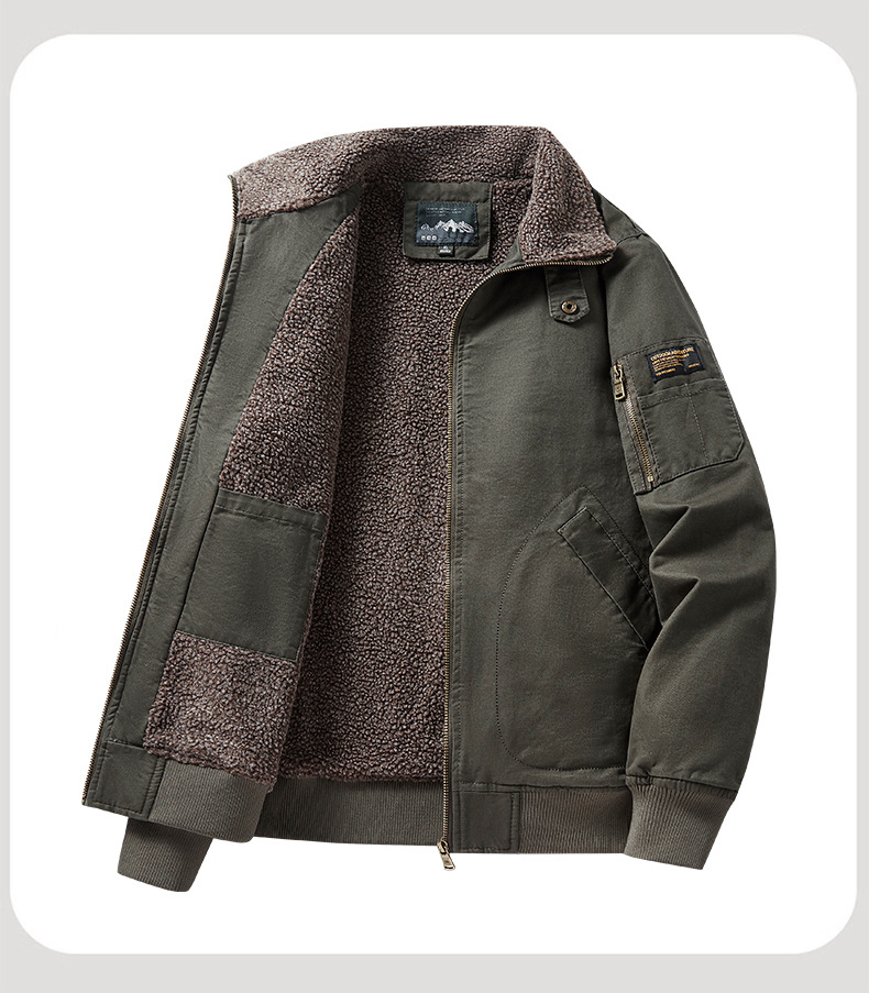 패션 중년 플라잉 재킷 남자의 2022 가을 겨울 새로운 야외 캐주얼 멀티 포켓 기모 작업복 재킷