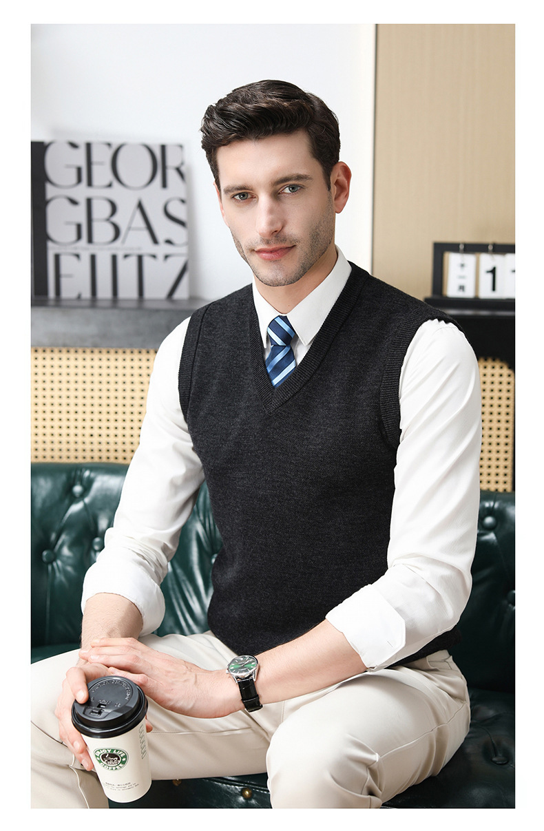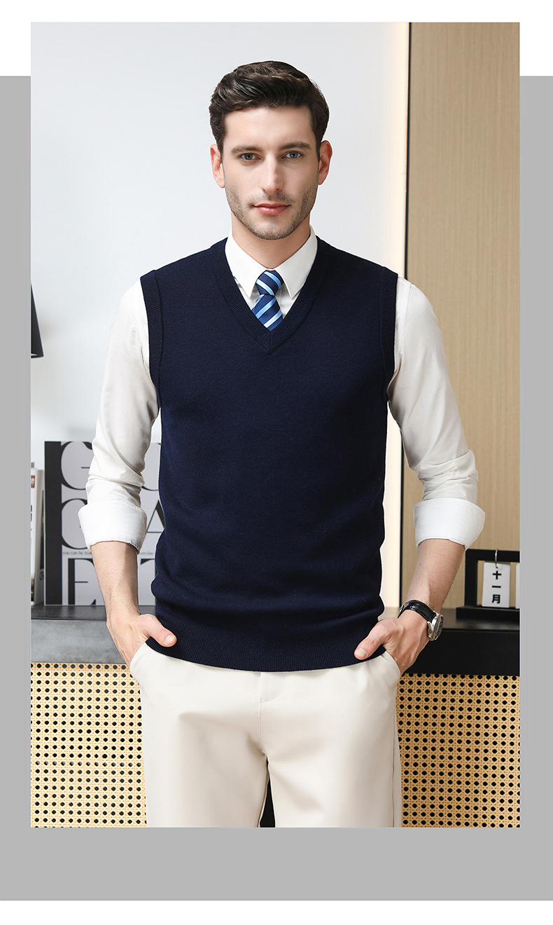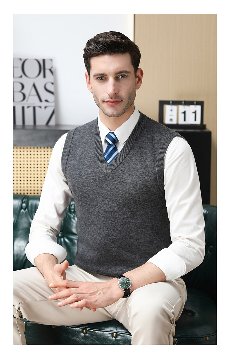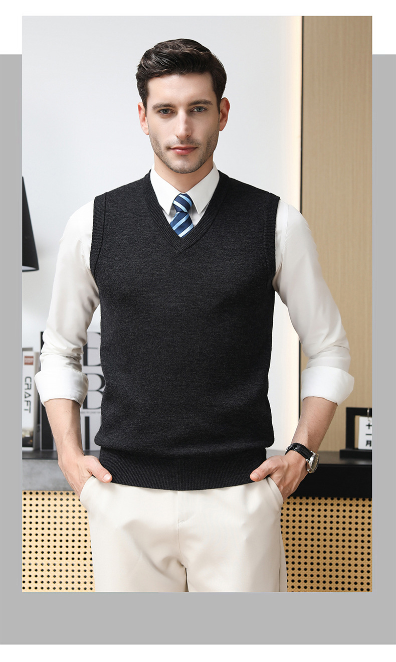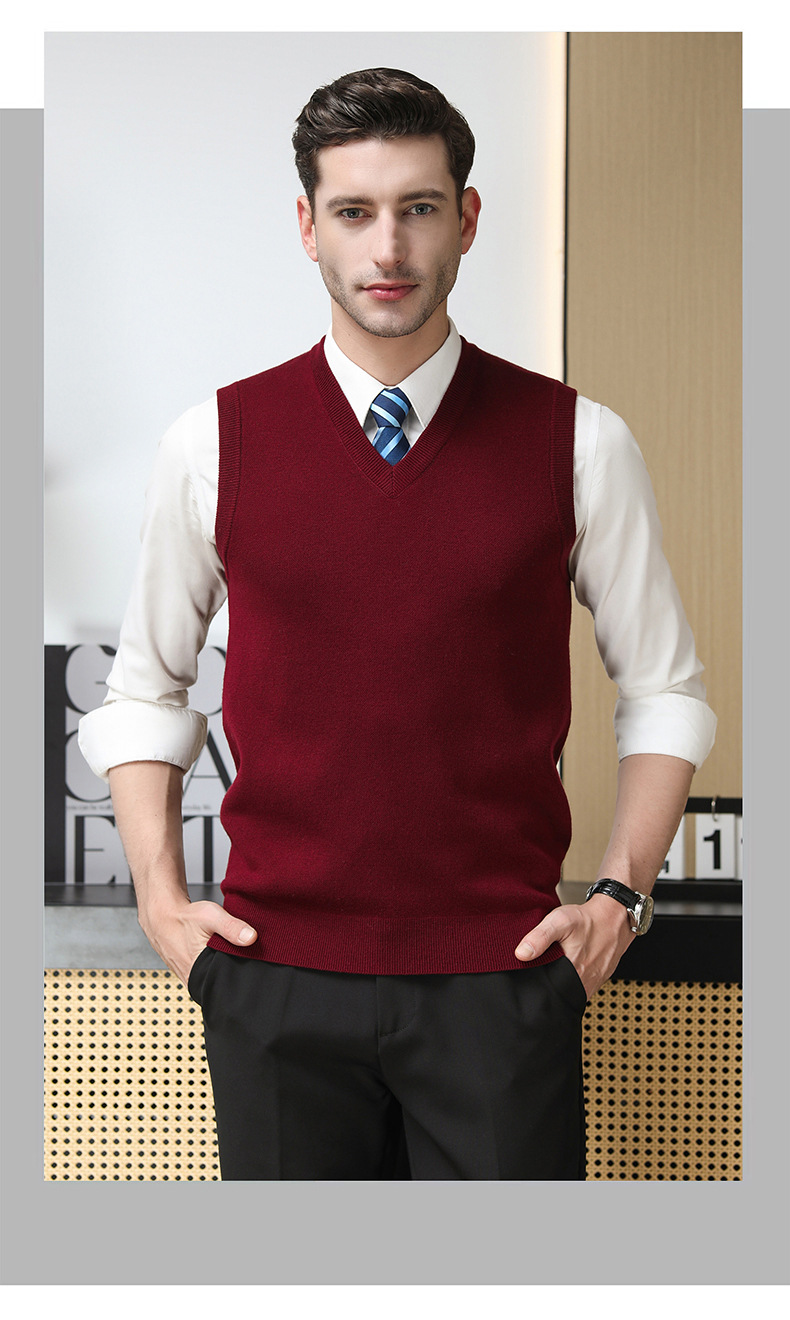 Puyuan 가을과 겨울 100 메리노 울 조끼 남자 V-Neck 조끼 민소매 두꺼운 스웨터 아빠 Waistcoat
