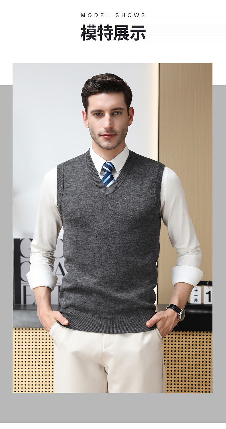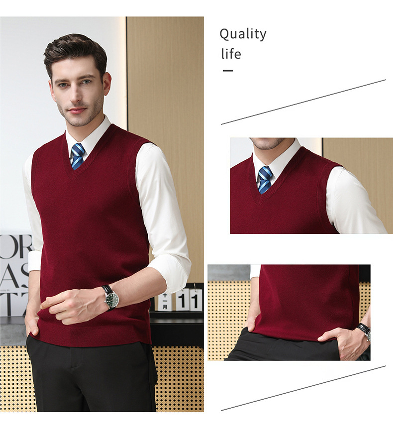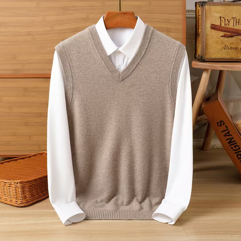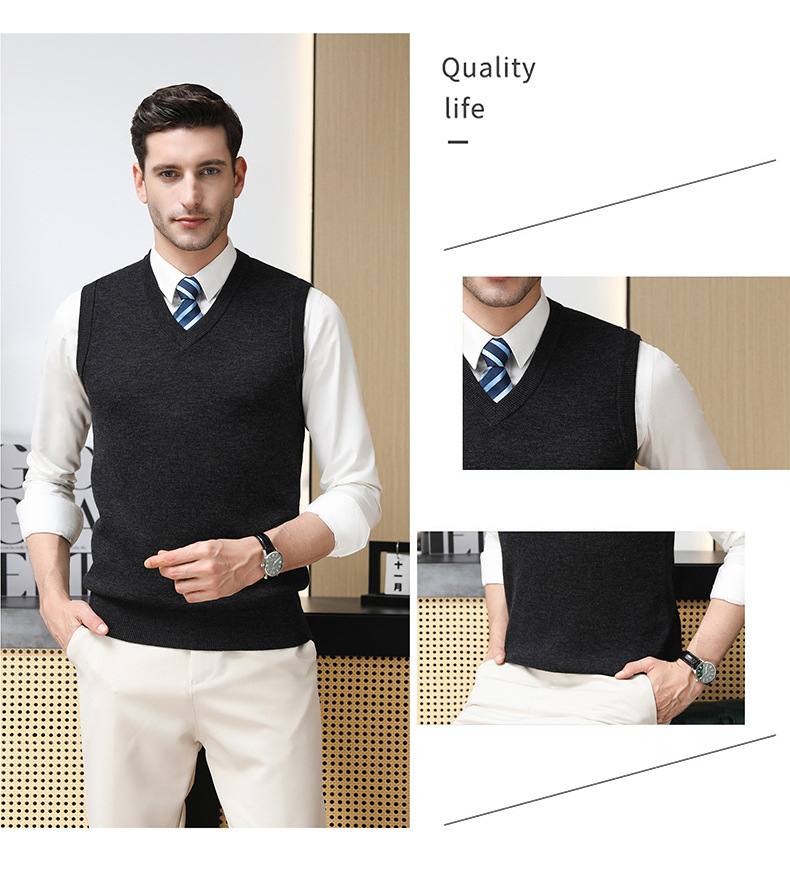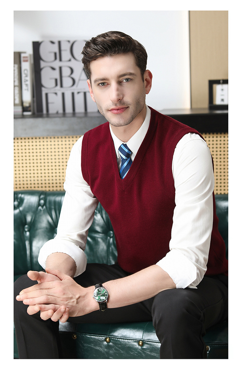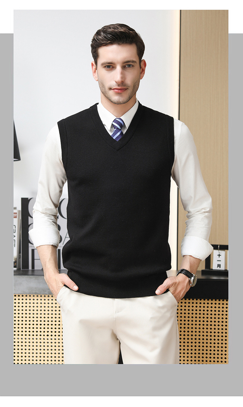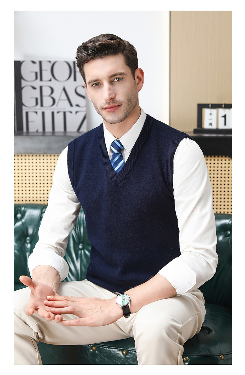 Puyuan 가을과 겨울 100 메리노 울 조끼 남자 V-Neck 조끼 민소매 두꺼운 스웨터 아빠 Waistcoat