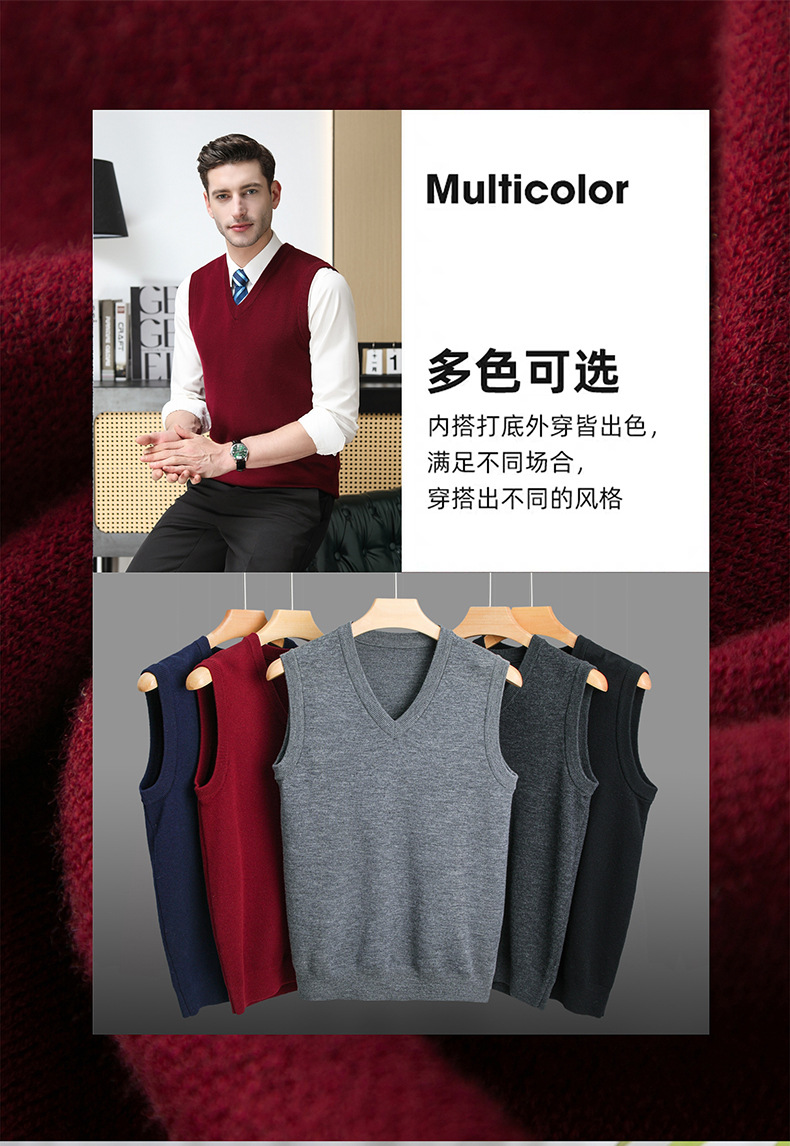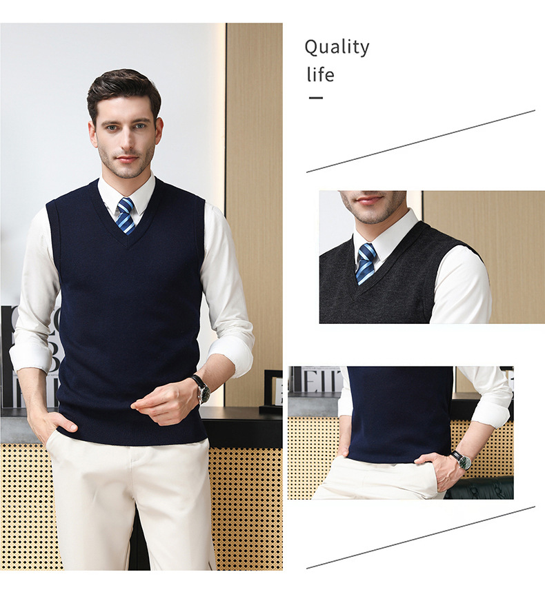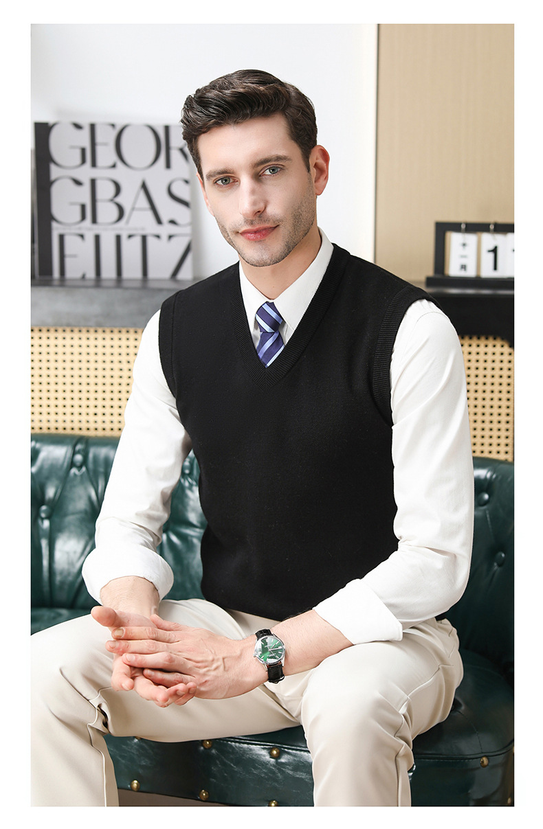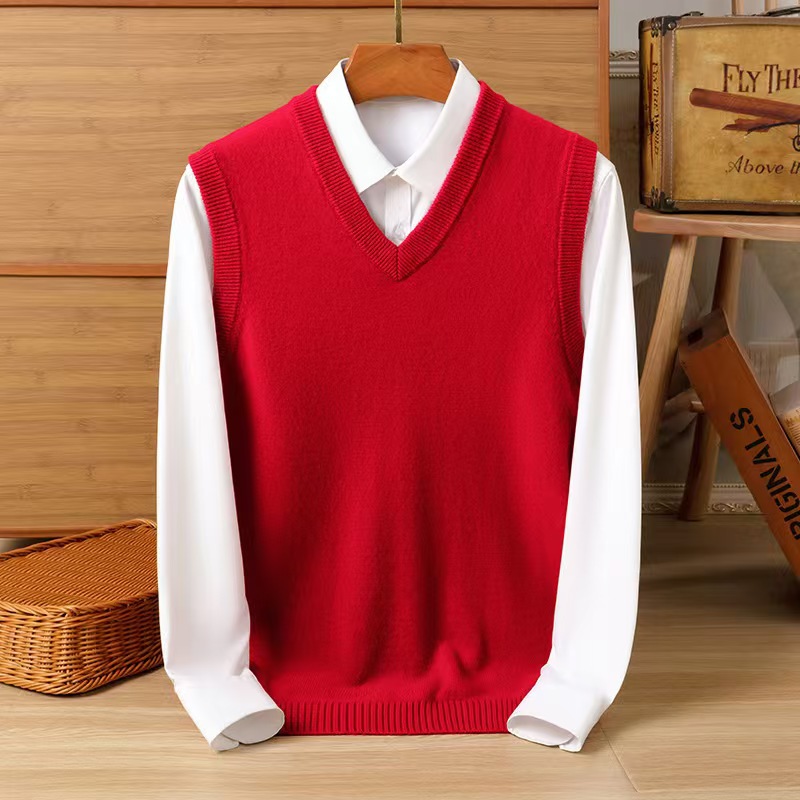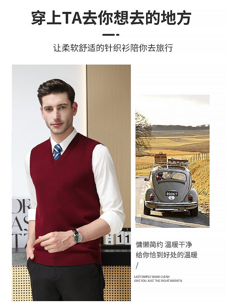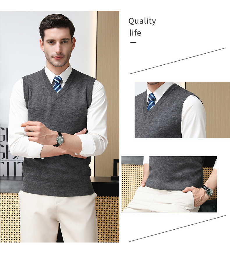 Puyuan 가을과 겨울 100 메리노 울 조끼 남자 V-Neck 조끼 민소매 두꺼운 스웨터 아빠 Waistcoat